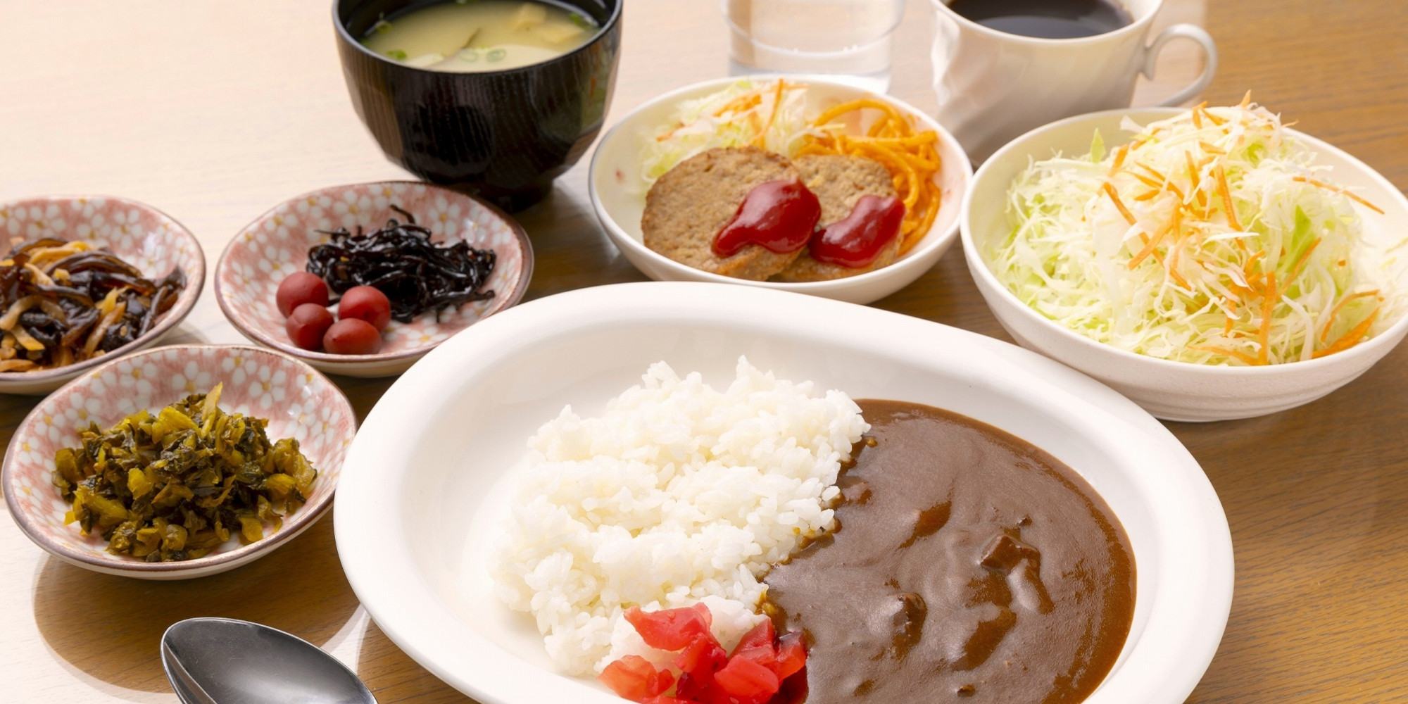 お替り自由、人気のカレーも何度でもおかわりOK!