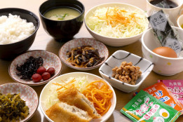 朝食はセルフサービスのバイキング形式でご用意しています。