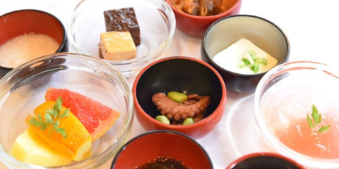 朝食は、全国のドーミーインチェーン共通の和洋バイキング、小鉢横丁と出来たての卵料理に加え、地域ごとの特色を出した「ご当地逸品料理」をご提供。