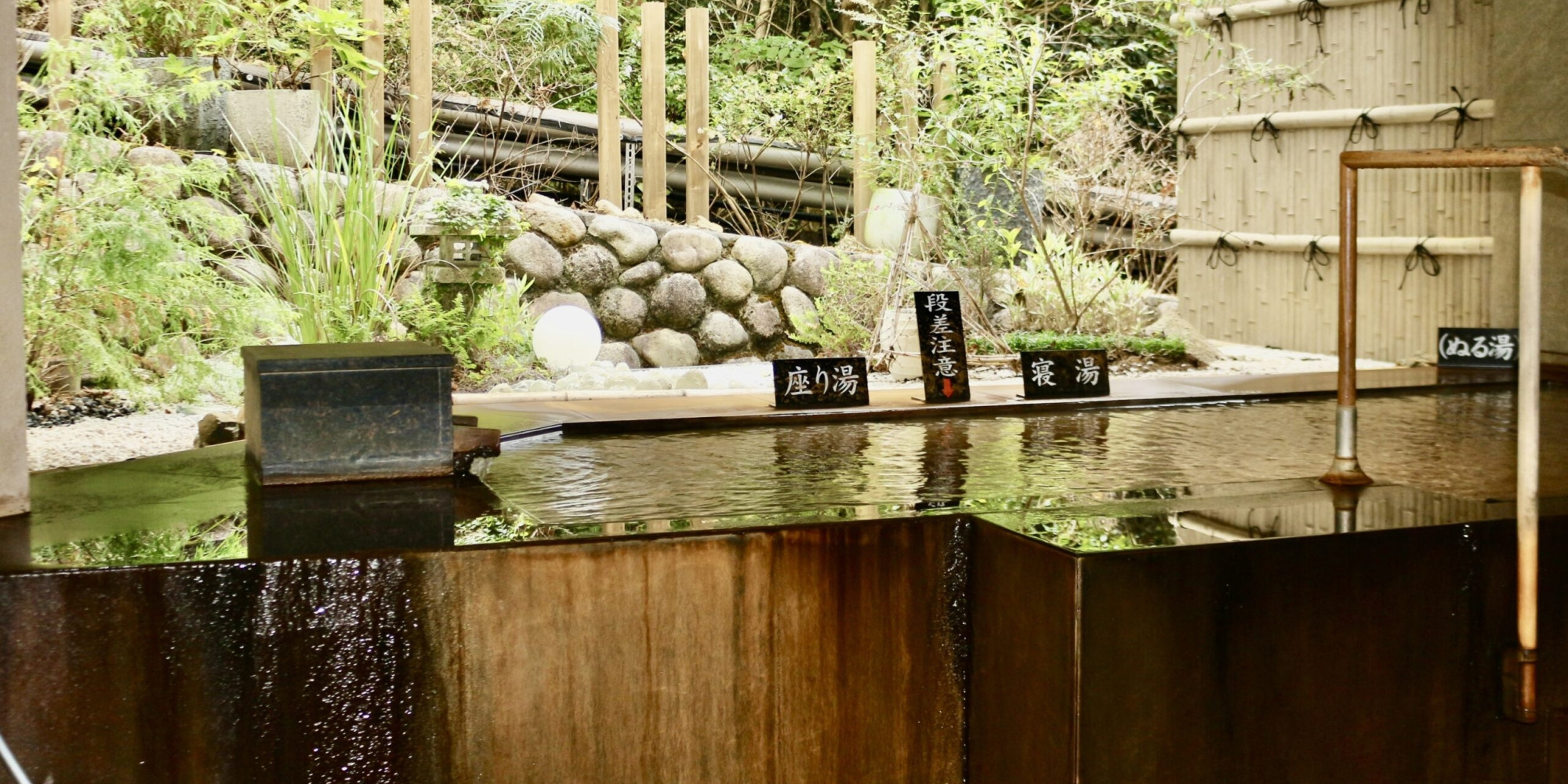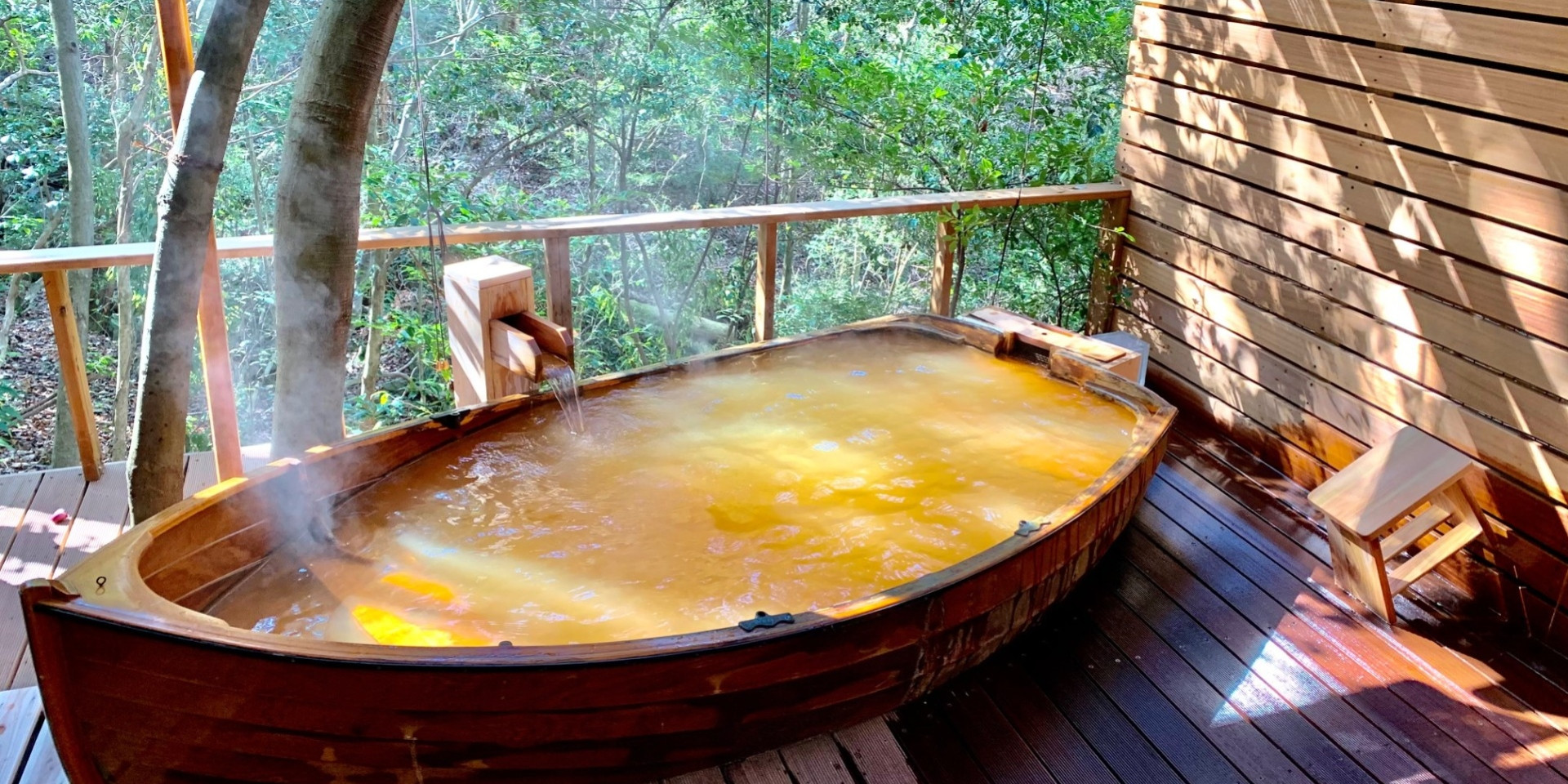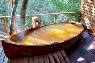 7ヶ所の露天風呂、11の浴槽と金色泉を満たした一艘の舟。