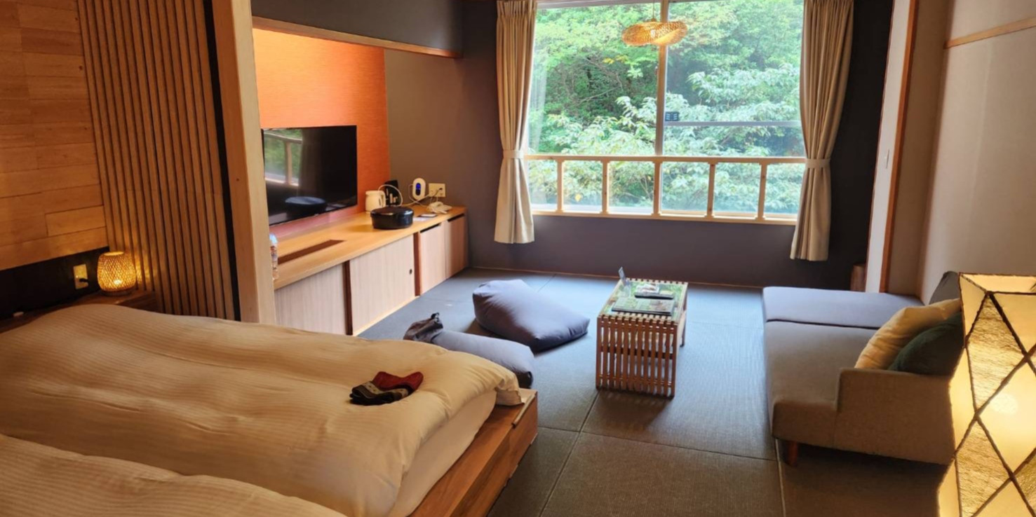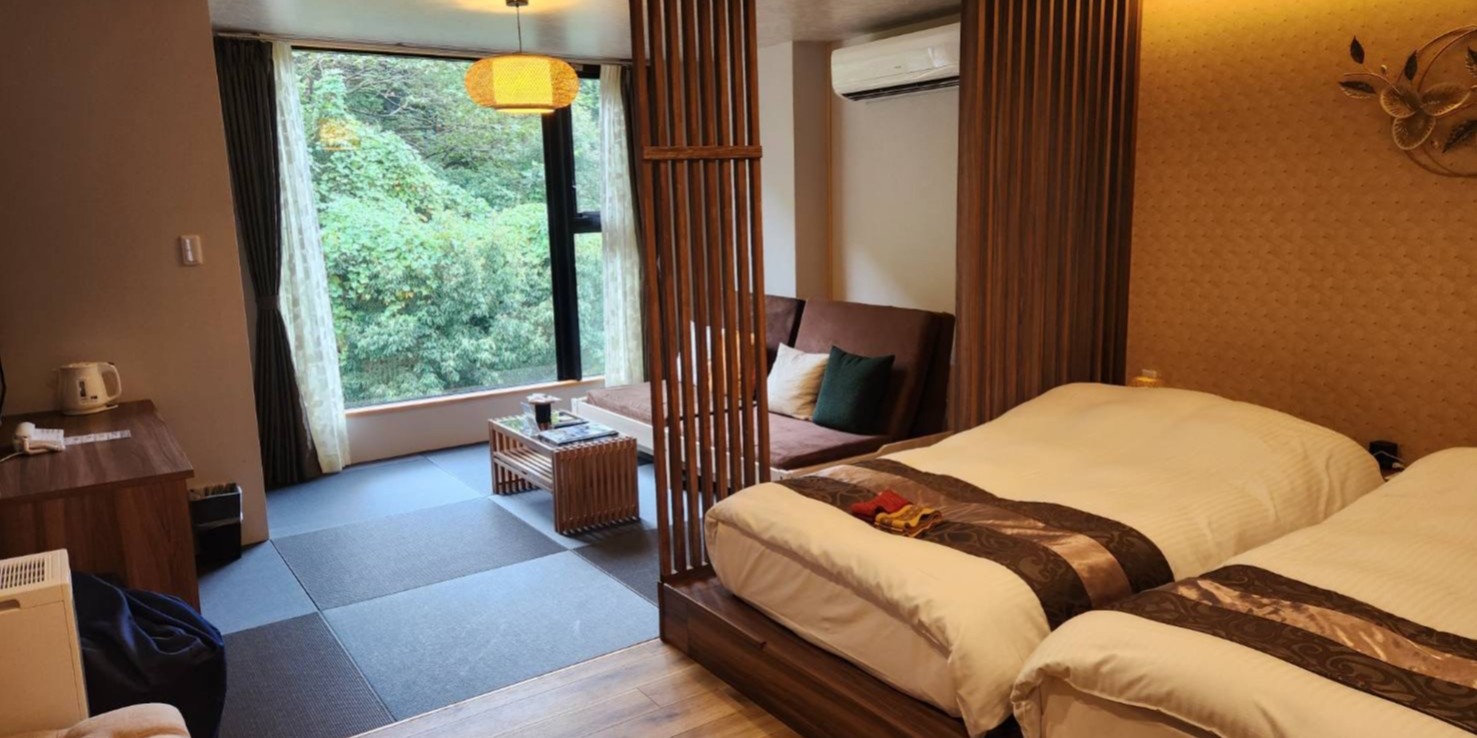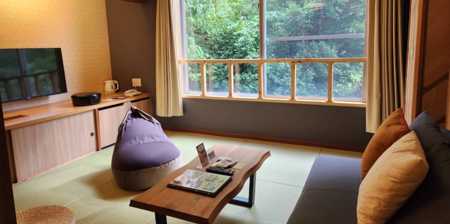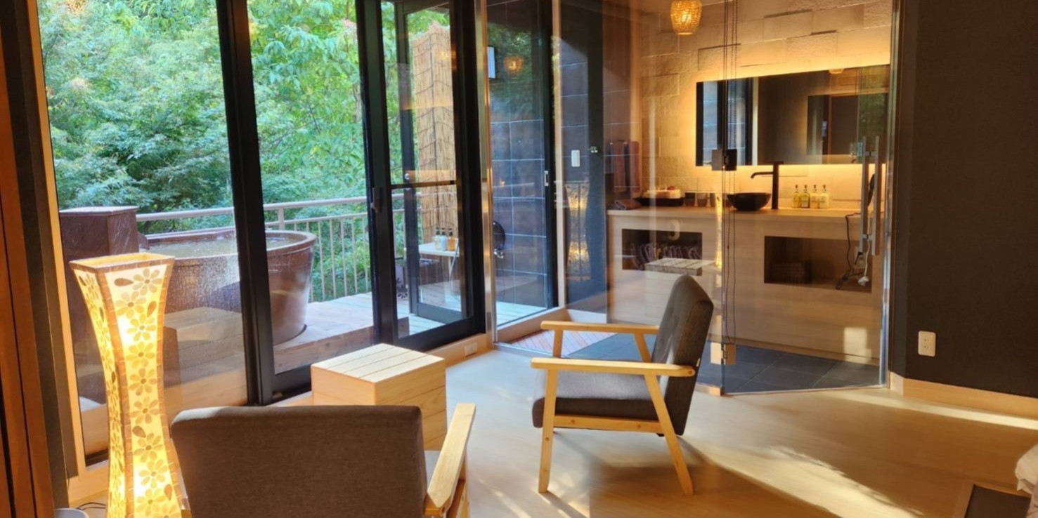 生命力に満ち溢れた森の木々が美しく見えるお部屋で、心と体を思う存分癒して頂けます。