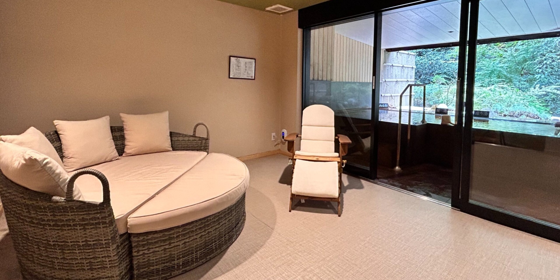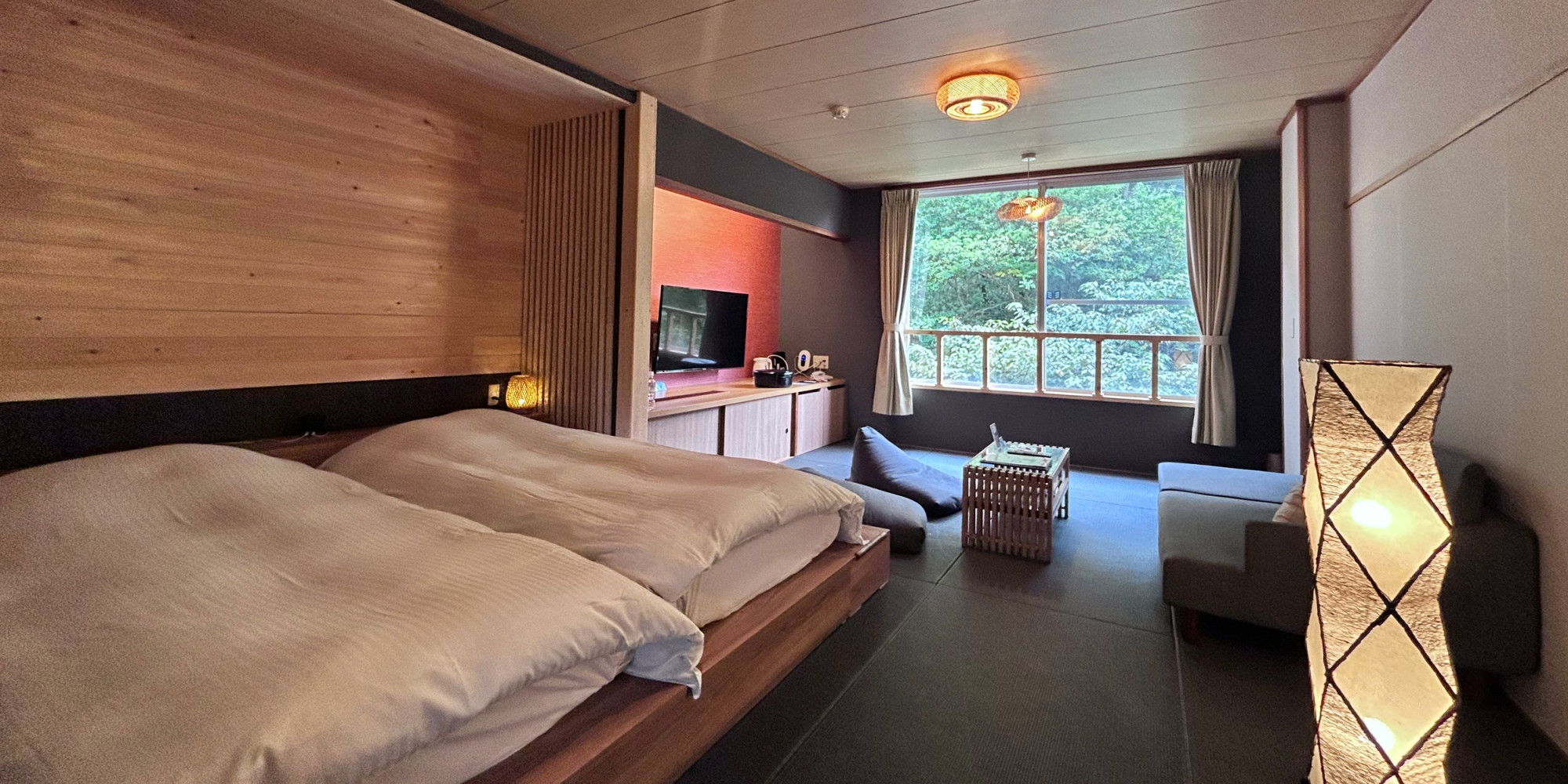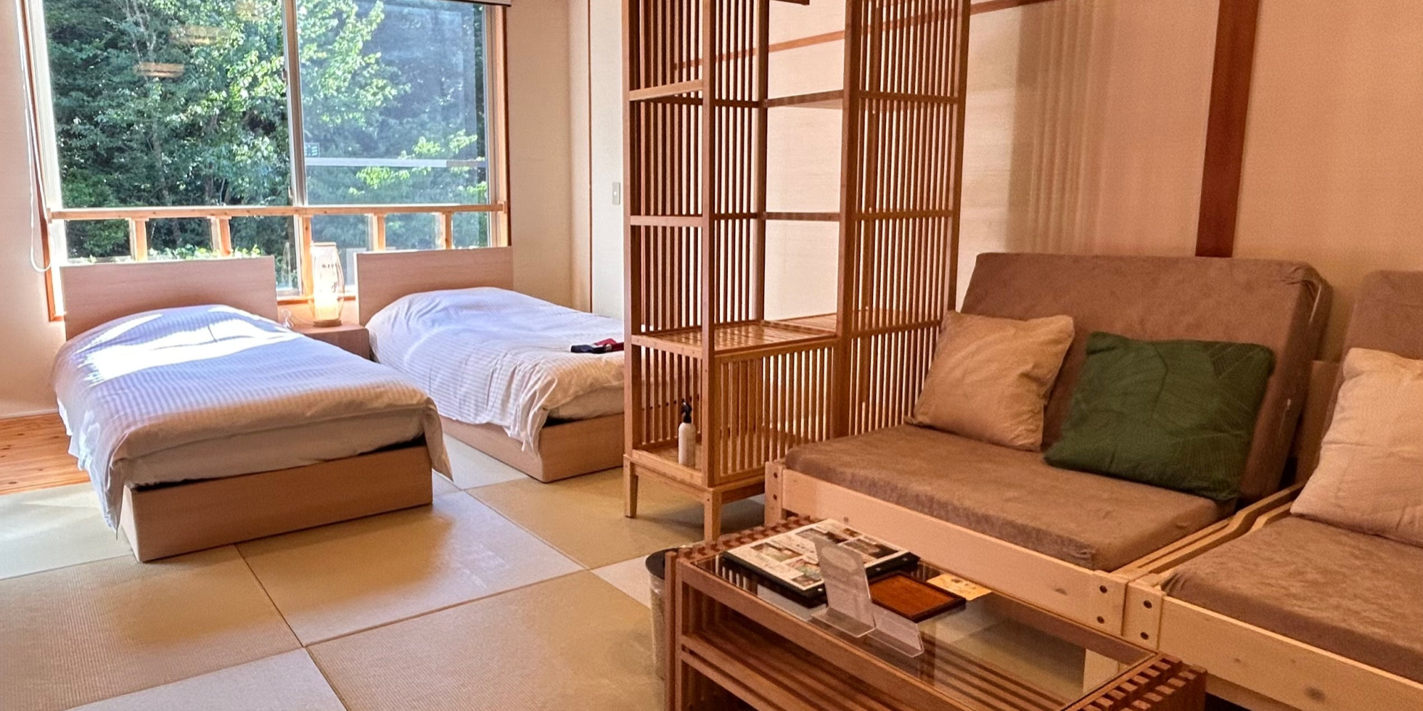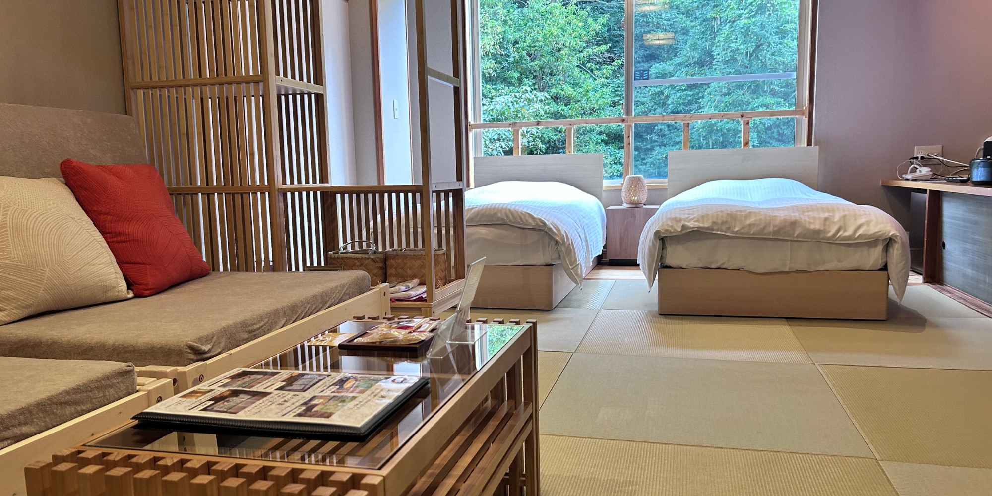 生命力に満ち溢れた森の木々が美しく見えるお部屋で、心と体を思う存分癒して頂けます。