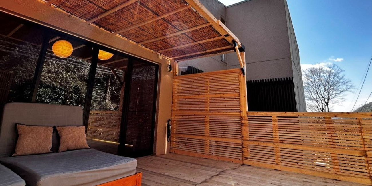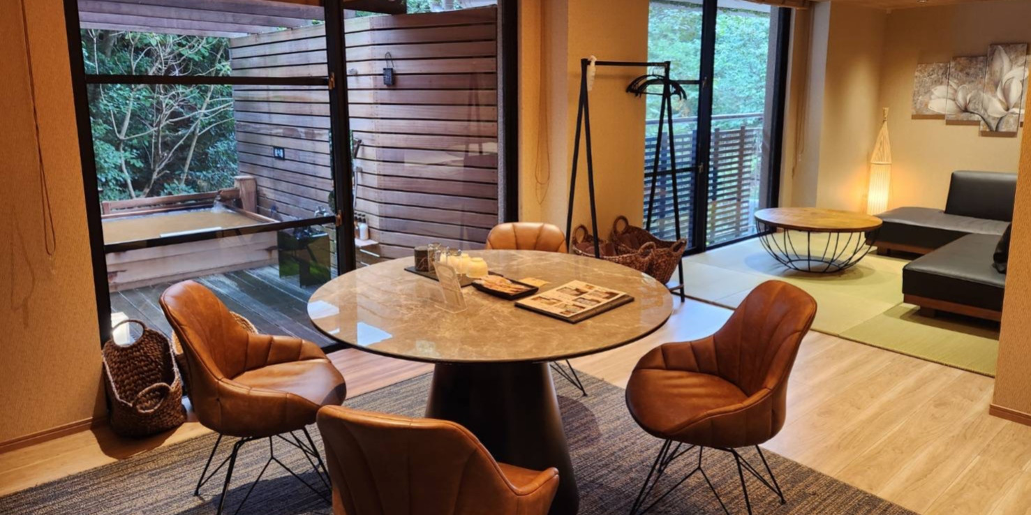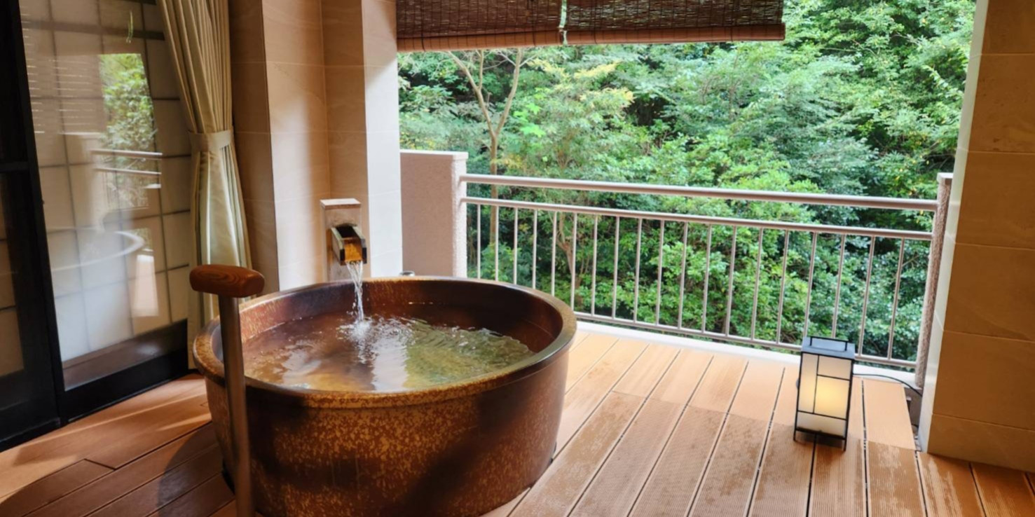 佳宵と月桂にある広々としたテラスからは、有馬の四季を織りなす山々を、ご覧頂き、ゆったり流れる 時間を過ごせば、森に含まれる至福の時間を感じて頂けるお部屋をご用意させて頂きました。