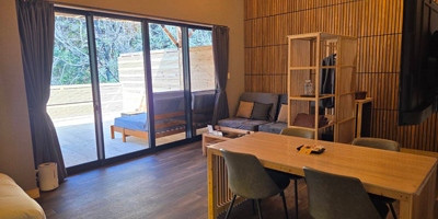 檜が多量に含有するフィトンチッドの効能による、自律神経の鎮静化、ストレス解消、快眠を体験して頂き、お部屋で、大自然を眺めながら、ゆっくりとお寛ぎください。