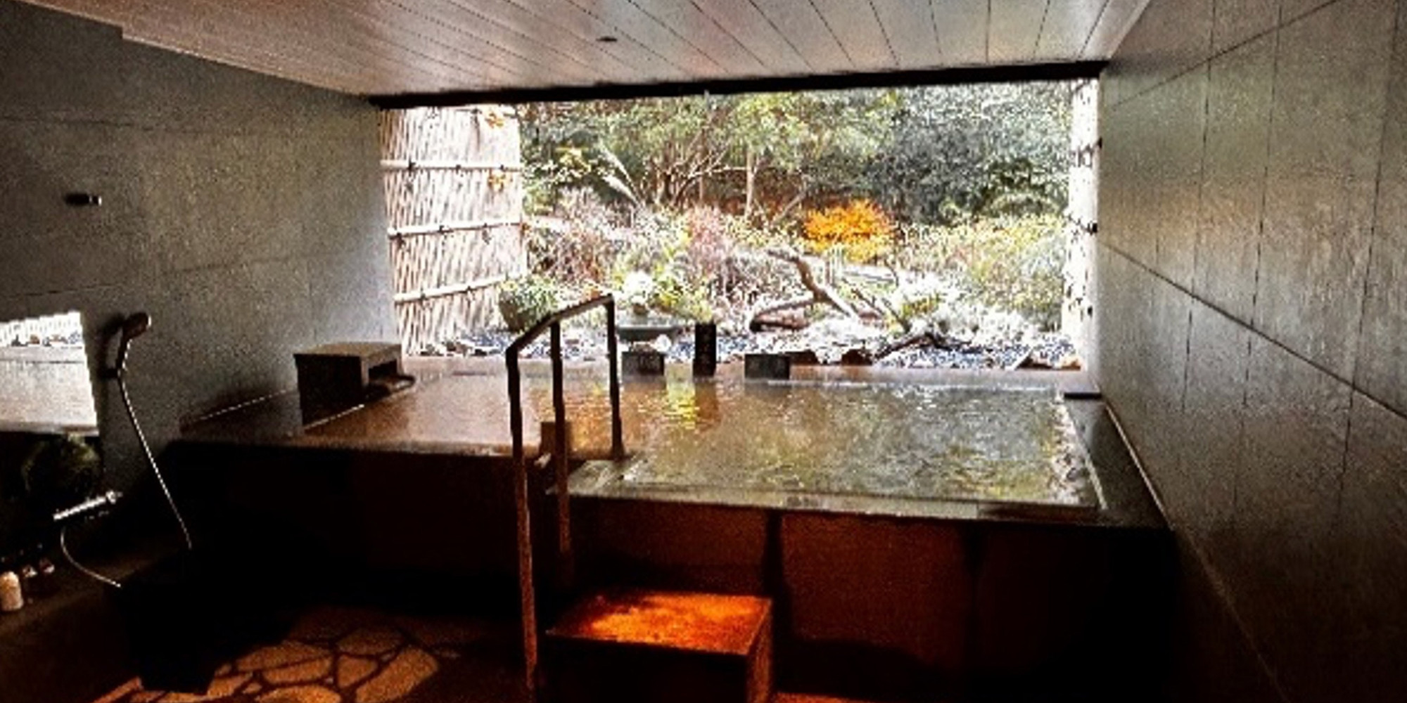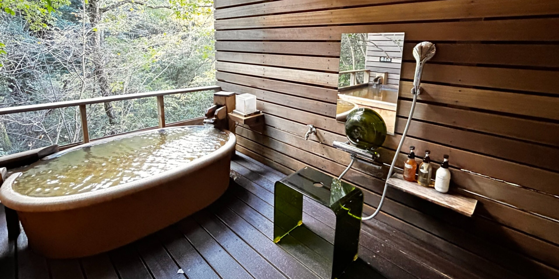 湯船に浸かりながら静寂に包まれる「森の源泉」