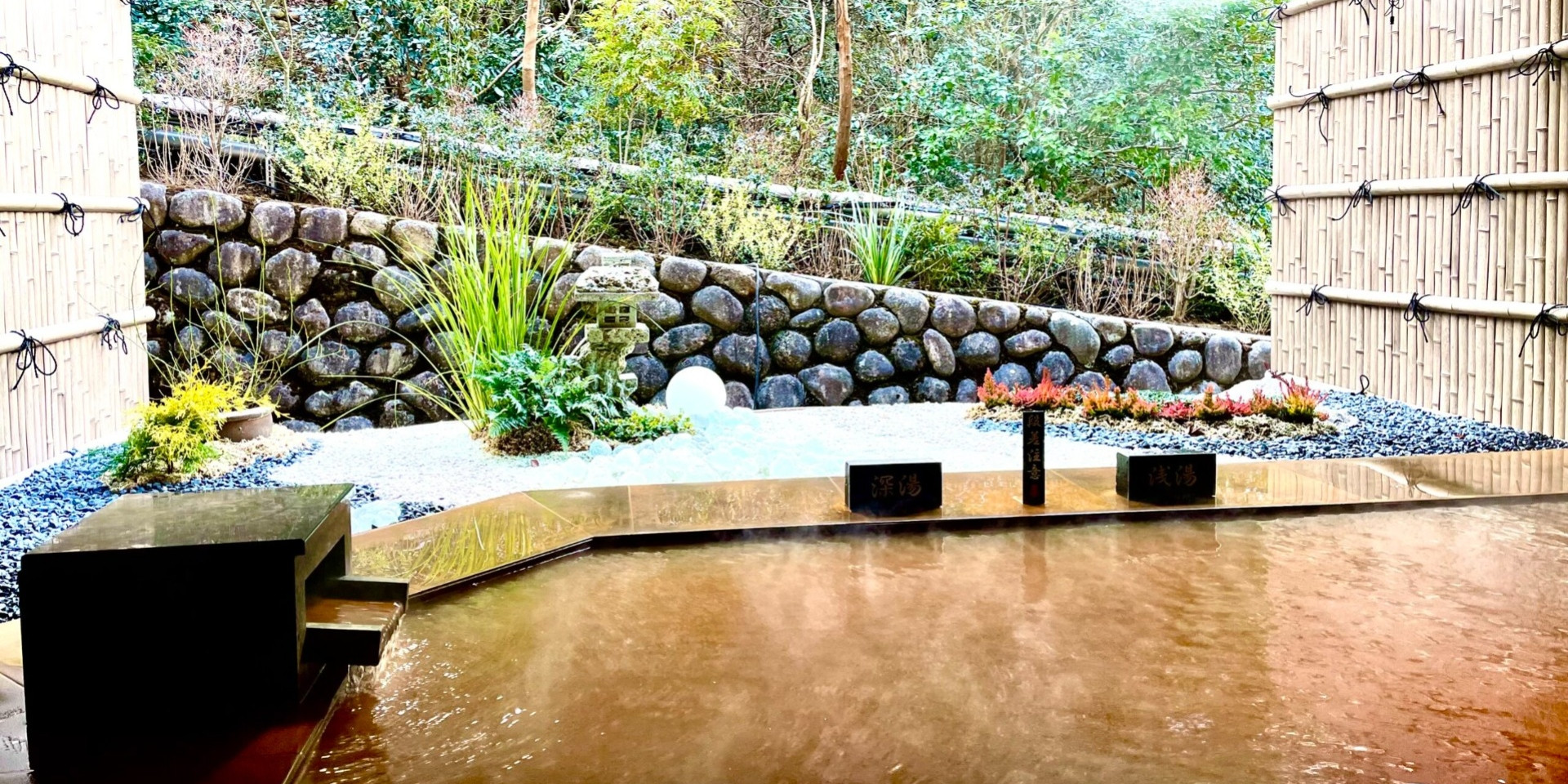 露天風呂は浅湯と深湯を備え、広さ・上質さを誇ります。