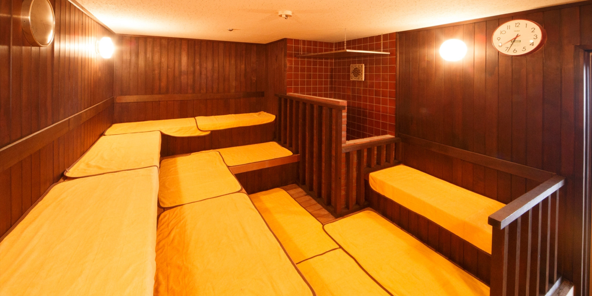 広いサウナと水風呂を完備し、2022年12月にはつぼ湯とクールダウンテラスを屋外に新設。