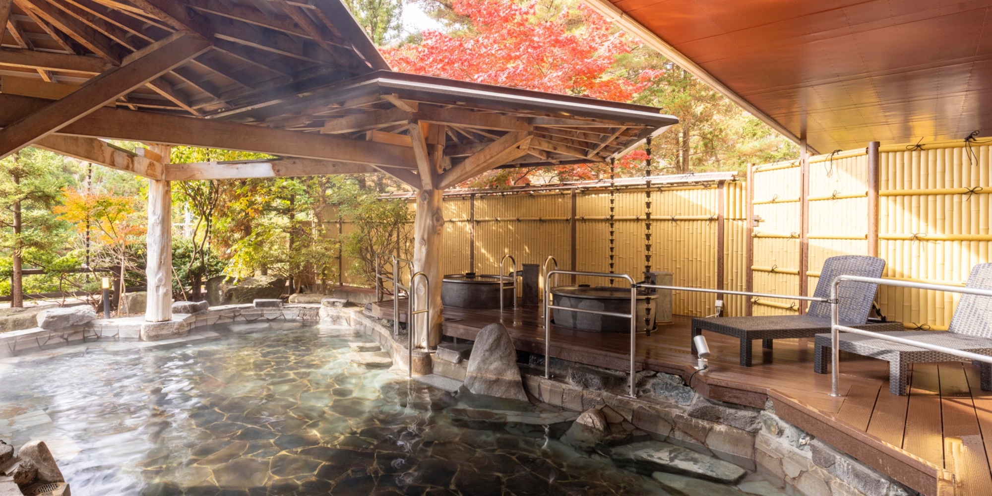 露天風呂からの景色は開放感に溢れ、季節の移ろいを全身で感じることができる紅葉の湯。