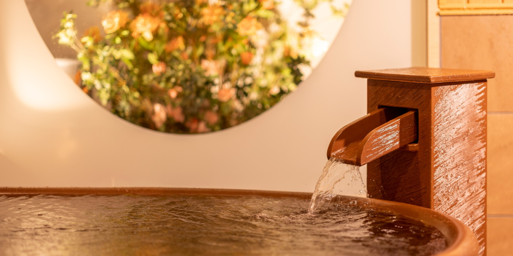 花巻温泉園内の自然をモチーフにした坪庭を眺めながら、信楽焼の浴槽でゆったり脚を伸ばしておくつろぎください。