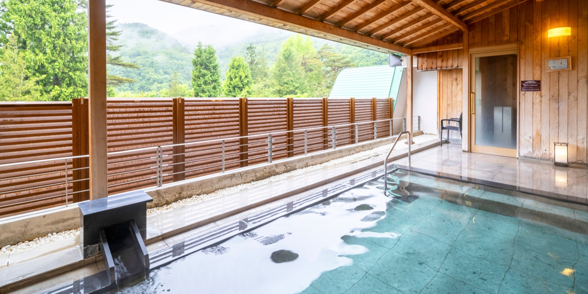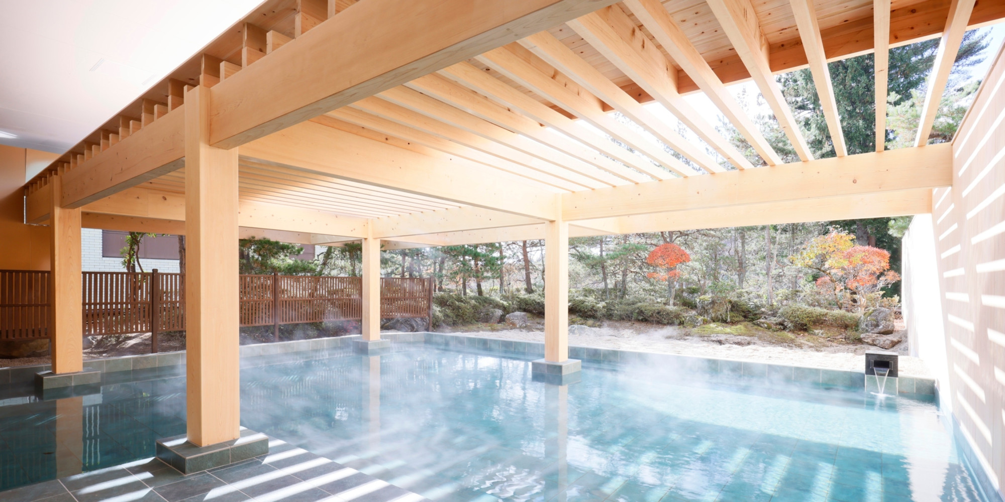 開放的な景色が広がる庭園露天風呂「花巻満天の湯」と岩盤露天風呂では、豊かな自然の移ろいを感じることができ、日ごろの疲れを癒すことができます。