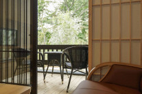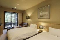 フローリングのスタンダードタイプの客室です。落ち着きのあるゆったりとした客室からは、竹林など緑豊かな風景を一望できます。