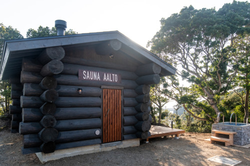 フィンランドの伝統的なサウナでもある丸太組みを採用し、
