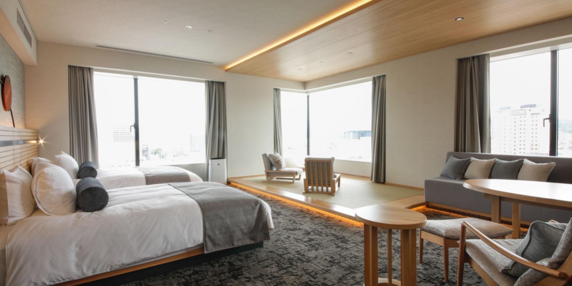 全室禁煙でツインルームを主体としてダブルルームや和洋室など、全7タイプ101室です。