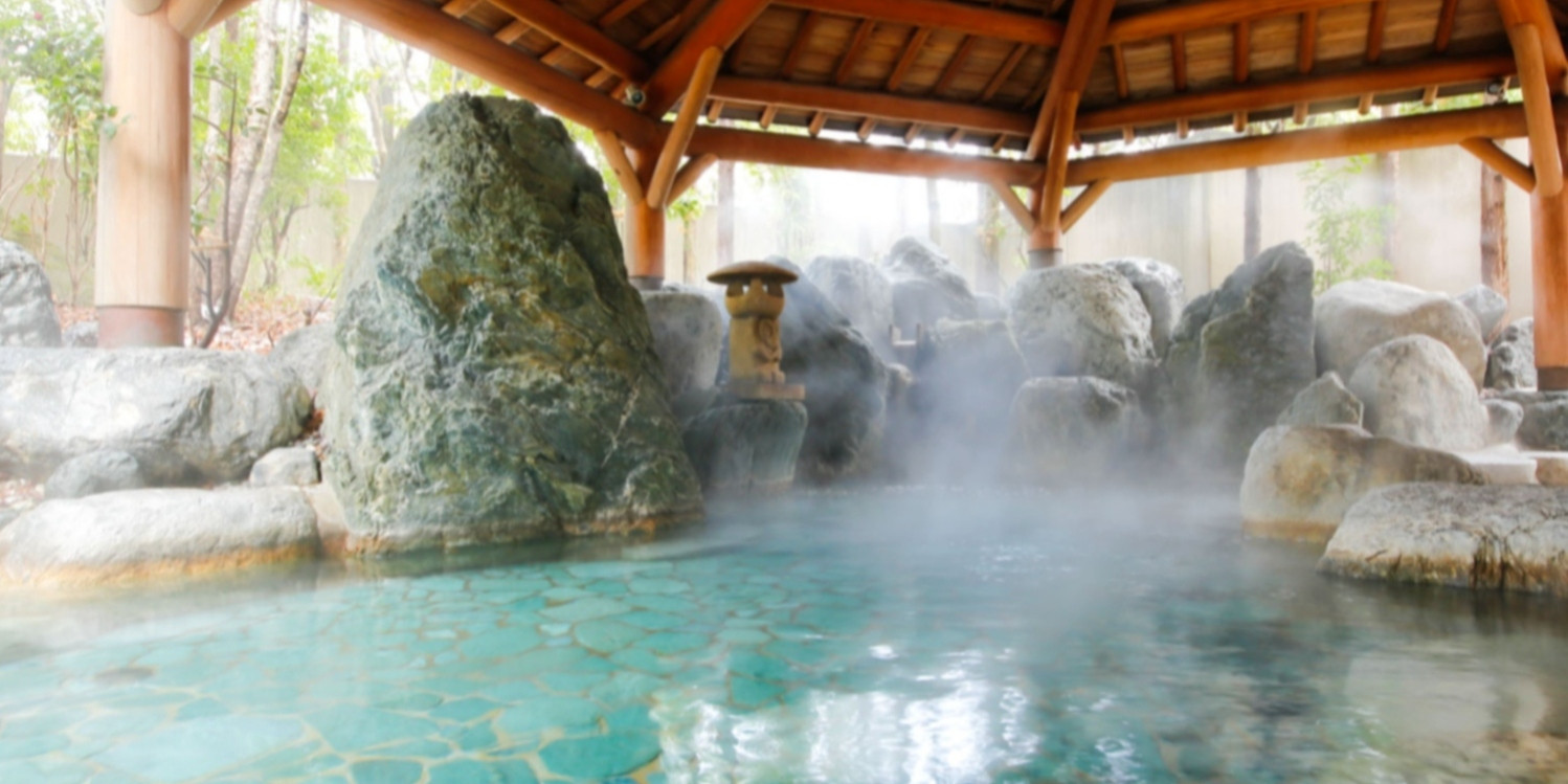 心を癒す優雅な大浴場と高濃度炭酸泉を備えた露天風呂、幻想的な空間が広がります。