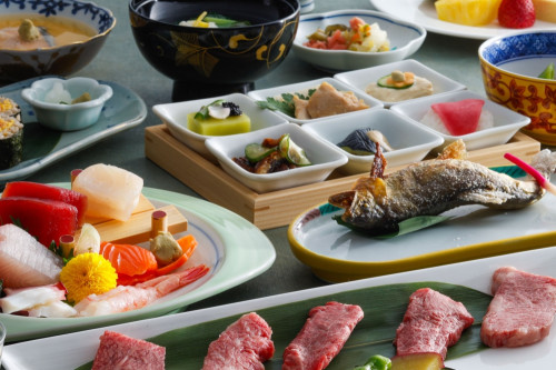 高山らしい和食、飛騨で味わう本格中国料理、飛騨の味覚を集めたブッフェに昔ながらの郷土料理と、旬の飛騨の素材をお客様の好みに合わせてお選びいただけます。