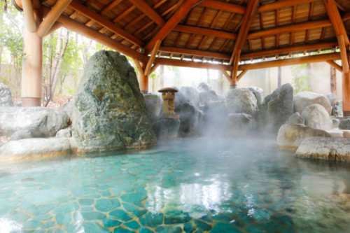 自家源泉の「天領の湯」と「天領の湯~風雅~」は、露天風呂やサウナ、ジャグジーなどがあり、四季折々の景色を楽しめる庭園露天風呂も魅力です。