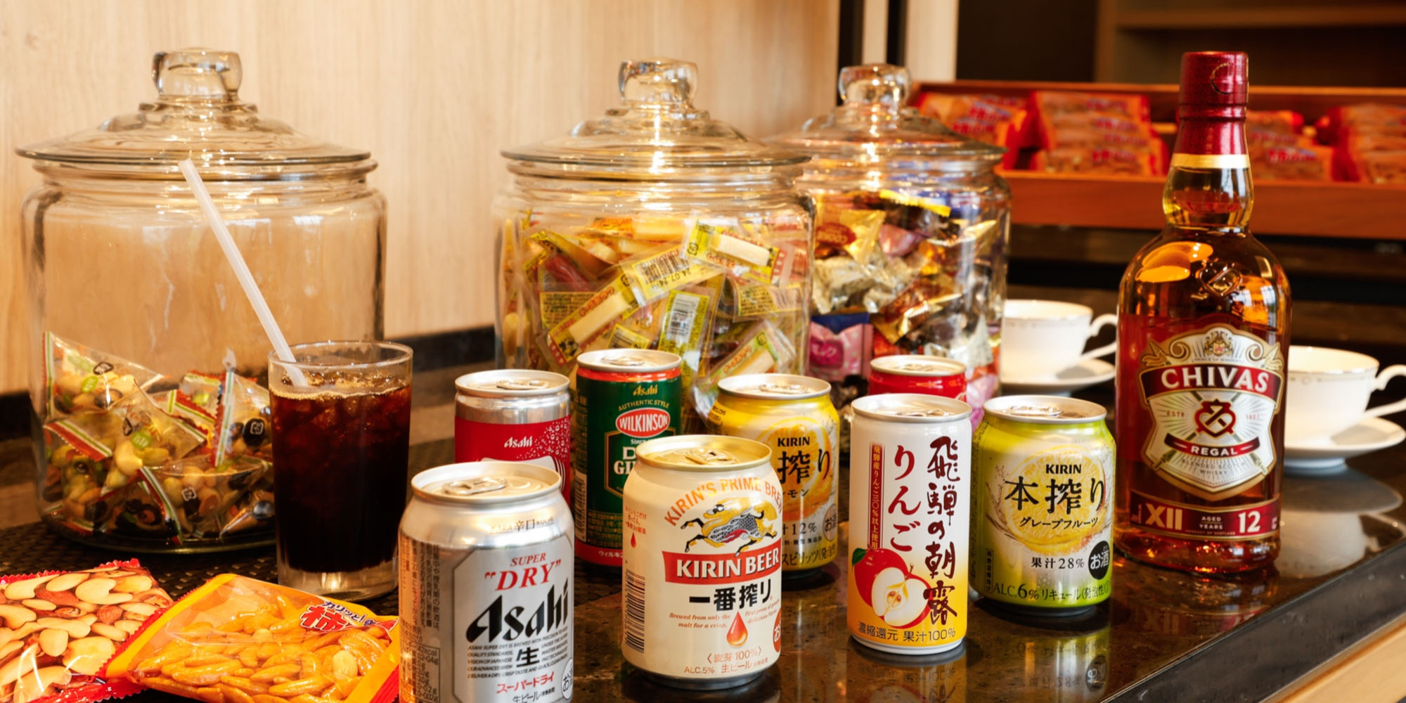 コーヒーやジュースはもちろん、アルコール類も無料にてお楽しみ頂けます。