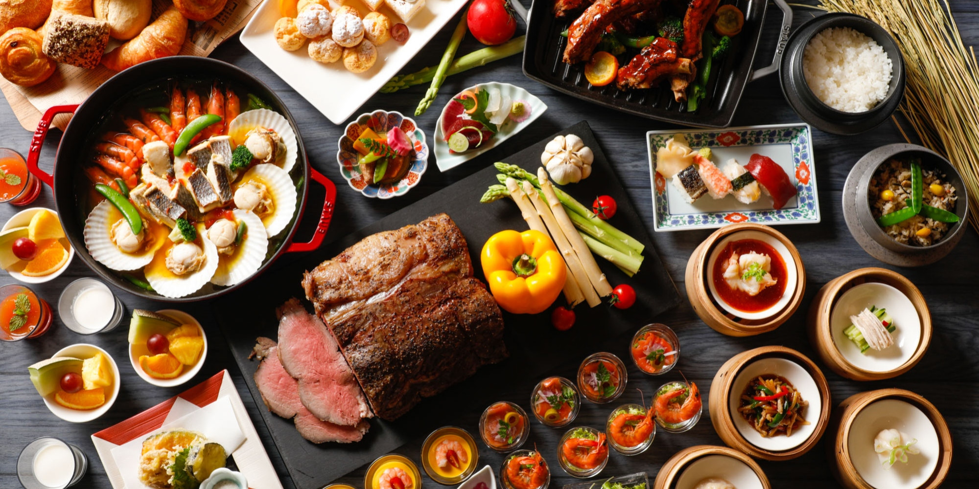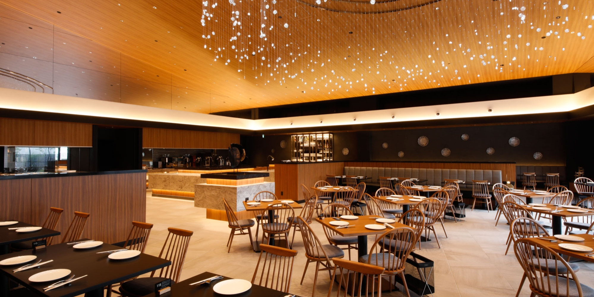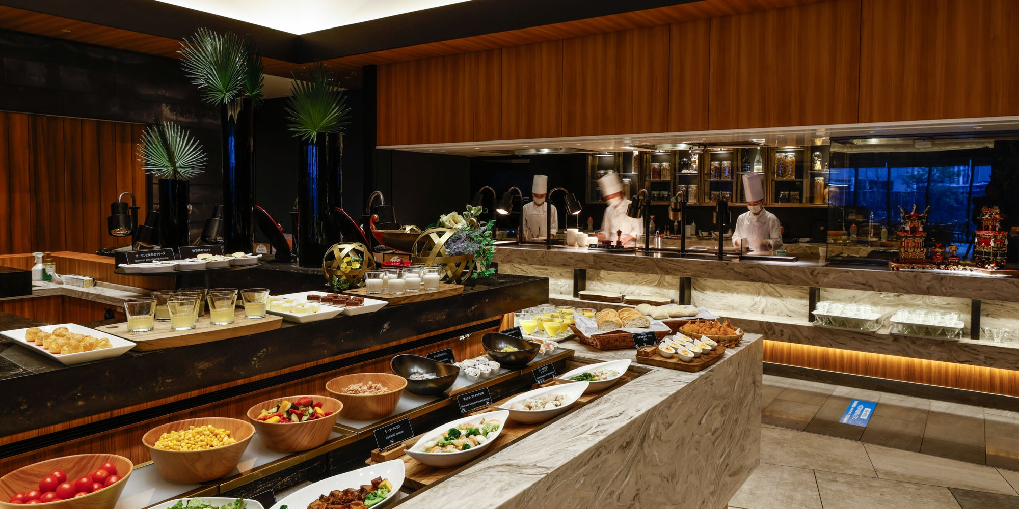 天井が高く広々とした開放感ある店内で贅沢な大人のブッフェをお楽しみください。