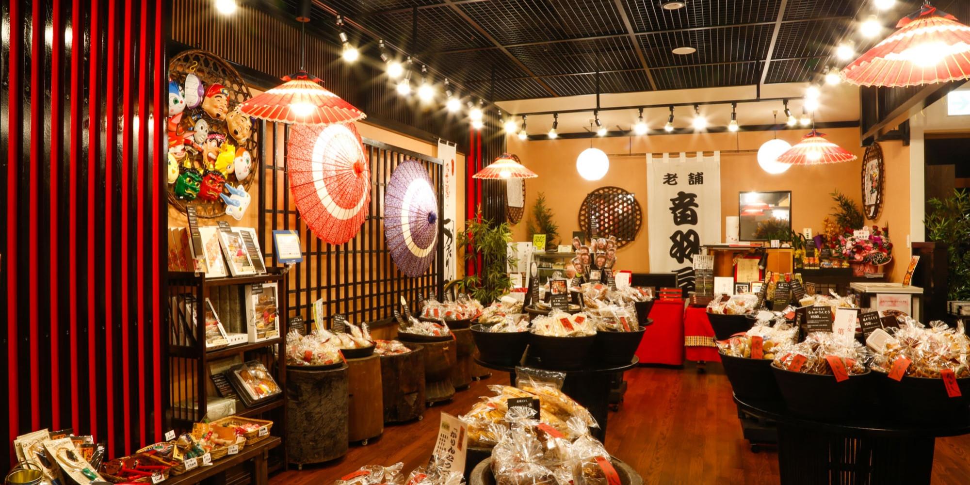 地域最大級のお土産処。館内7000点以上の圧倒的な品揃えと手焼きせんべいやさるぼぼ作り体験などお買い物以外にも楽しめるエンターテインメント空間です。