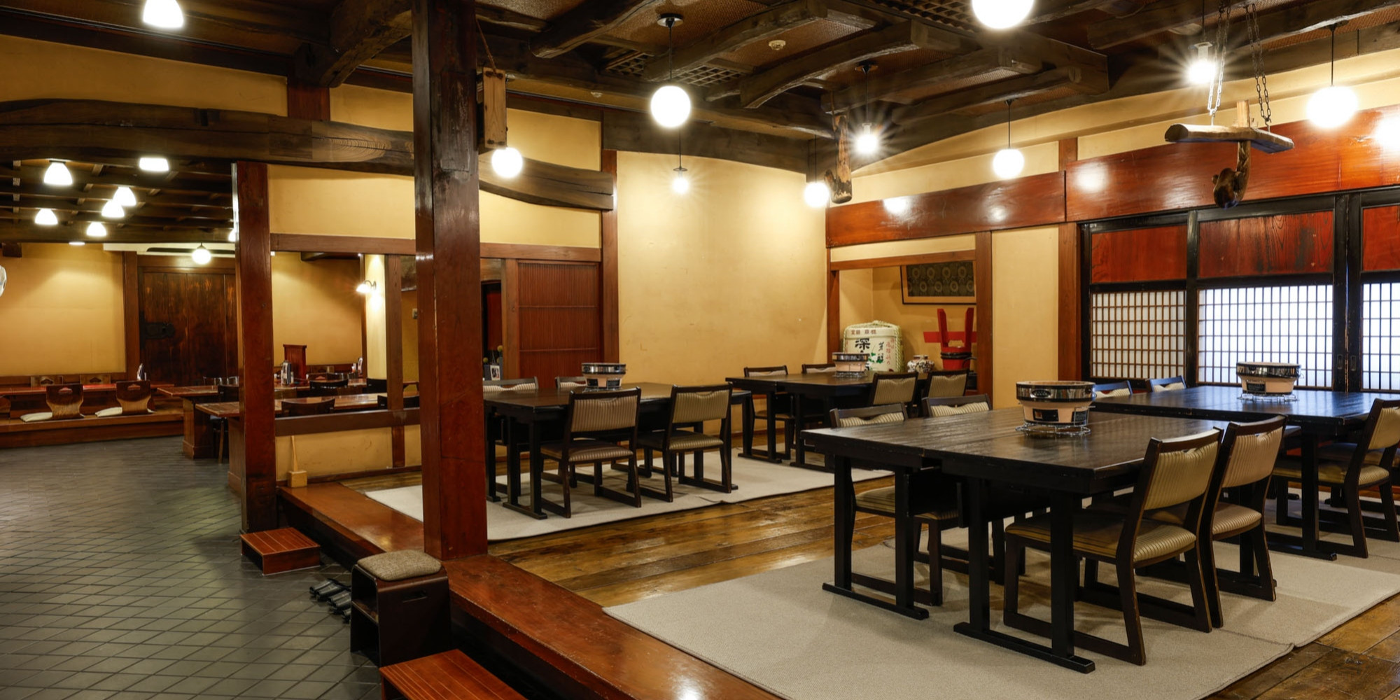 本物の古⺠家を移築した店内で昔ながらの素朴な⾷事⾵景を感じていただけます。