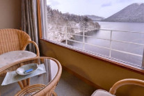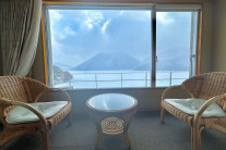 お部屋は270度レイクビューの絶景で、四季折々の景色と、