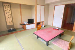 シャンプー・リンス・ボディソープ・石鹸・タオル・バスタオル・ハミガキセット・くし・ブラシ・ドライヤー・髭剃り・浴衣・スリッパ・冷蔵庫・湯沸しポット・お茶セット(無料)・テレビ