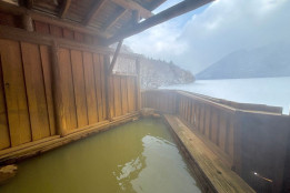 湖面の”鼓動”が伝わる、湖にせりだした露天風呂。