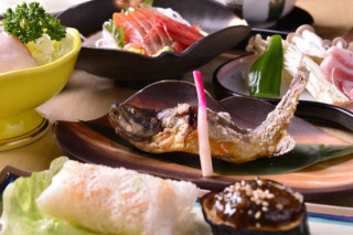 イワナや山女などの塩焼きをはじめ、地場食材中心の山海の幸を味わう時間。