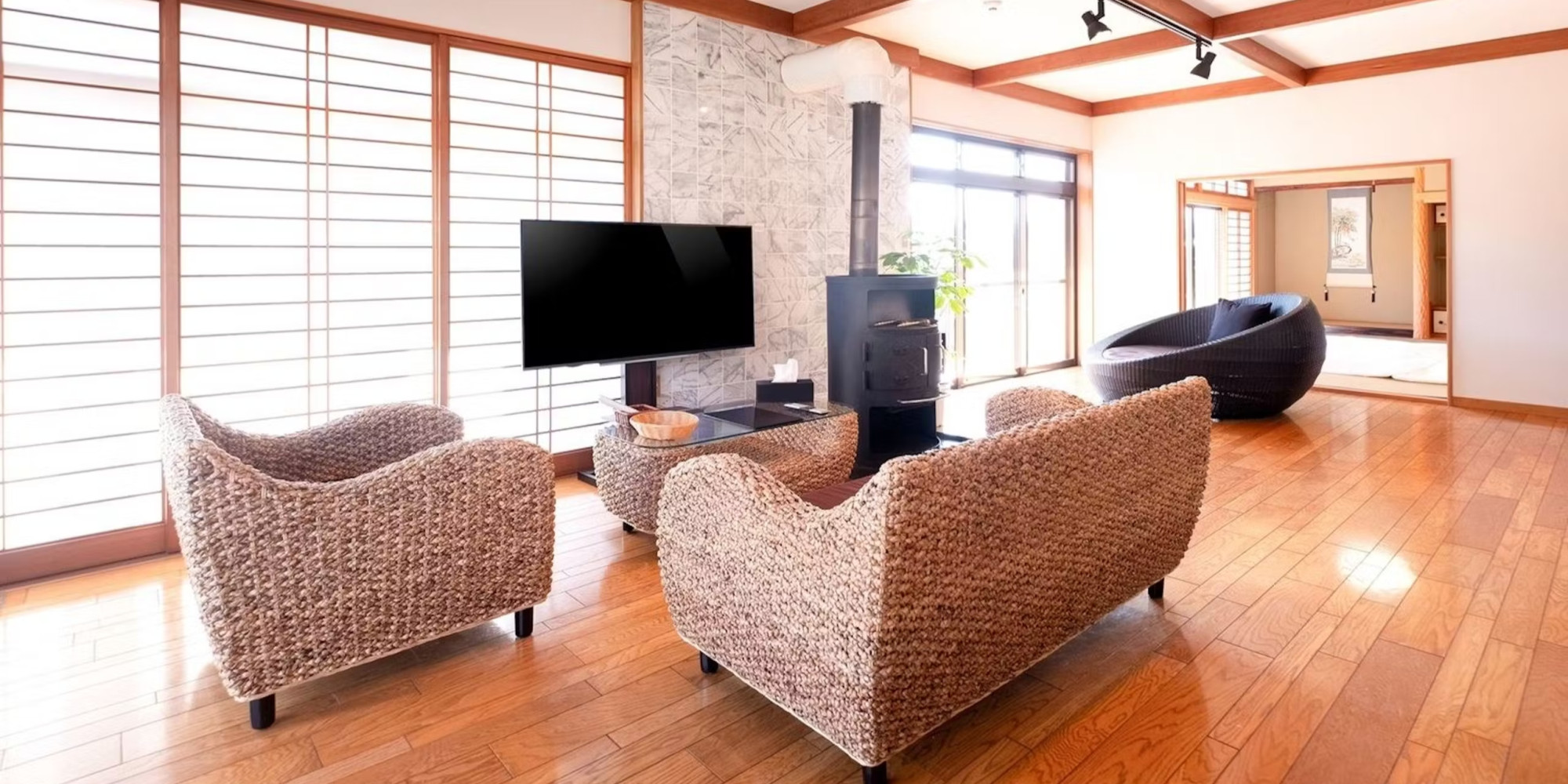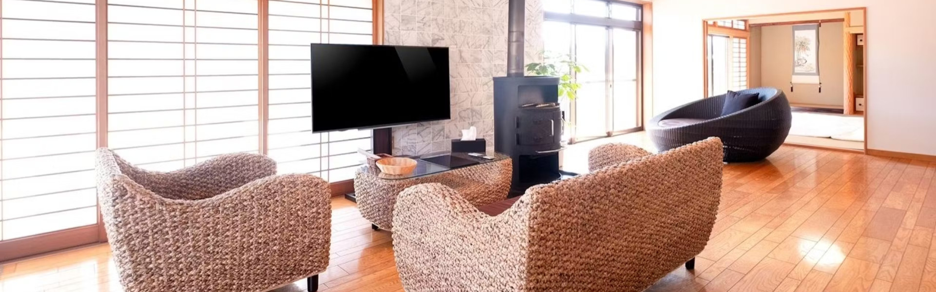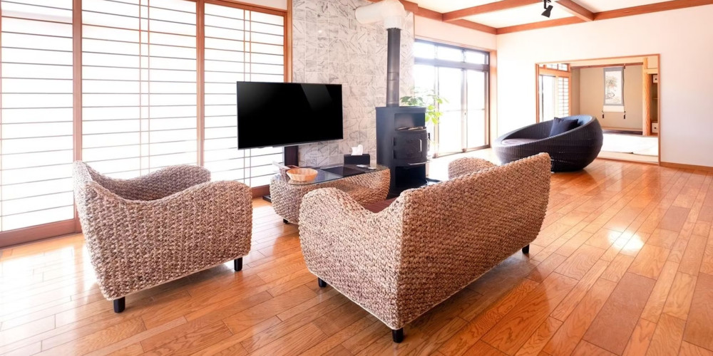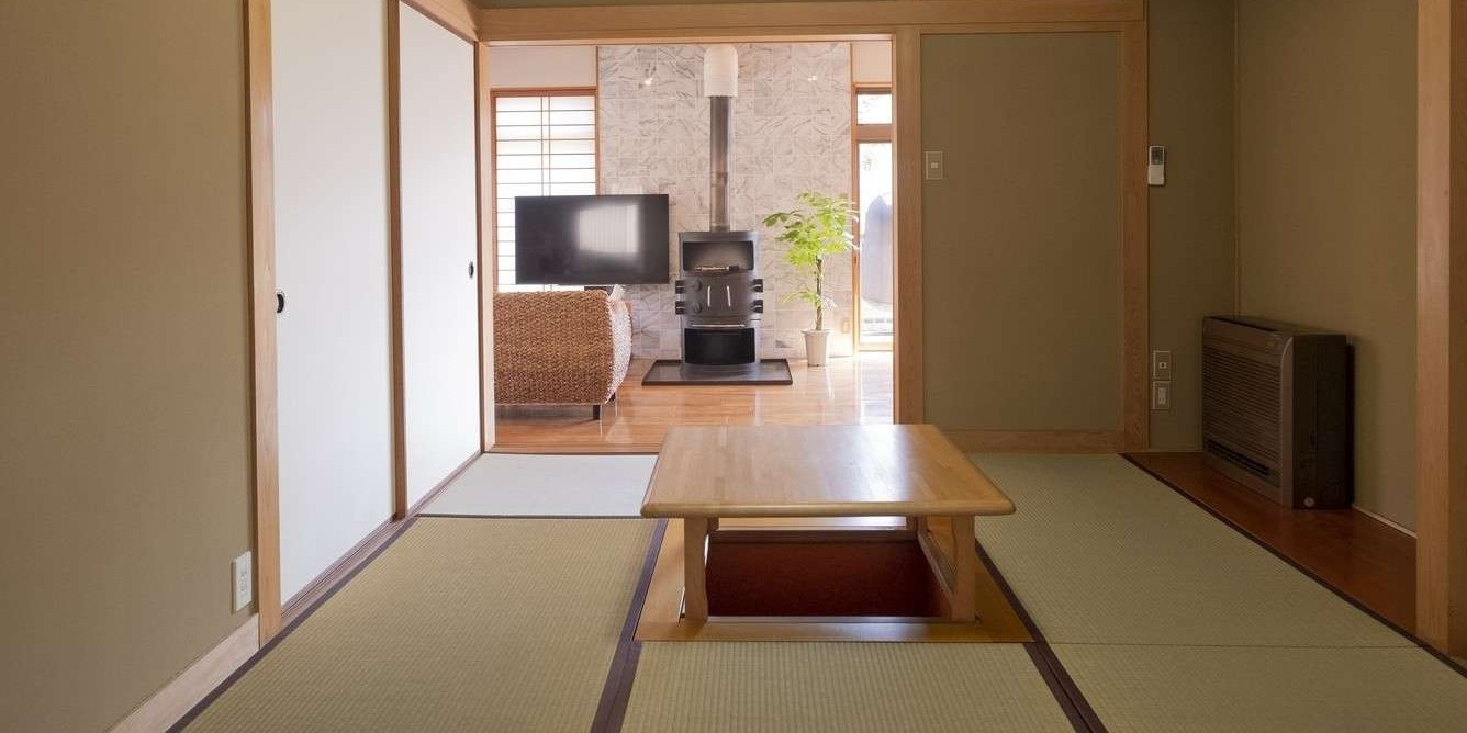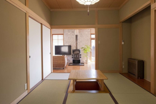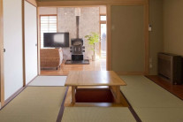 当館は一棟貸し切の宿となっております。洋室・和室2室に加え、30㎡ある広々としたリビング。更にバルコニーを完備しております。