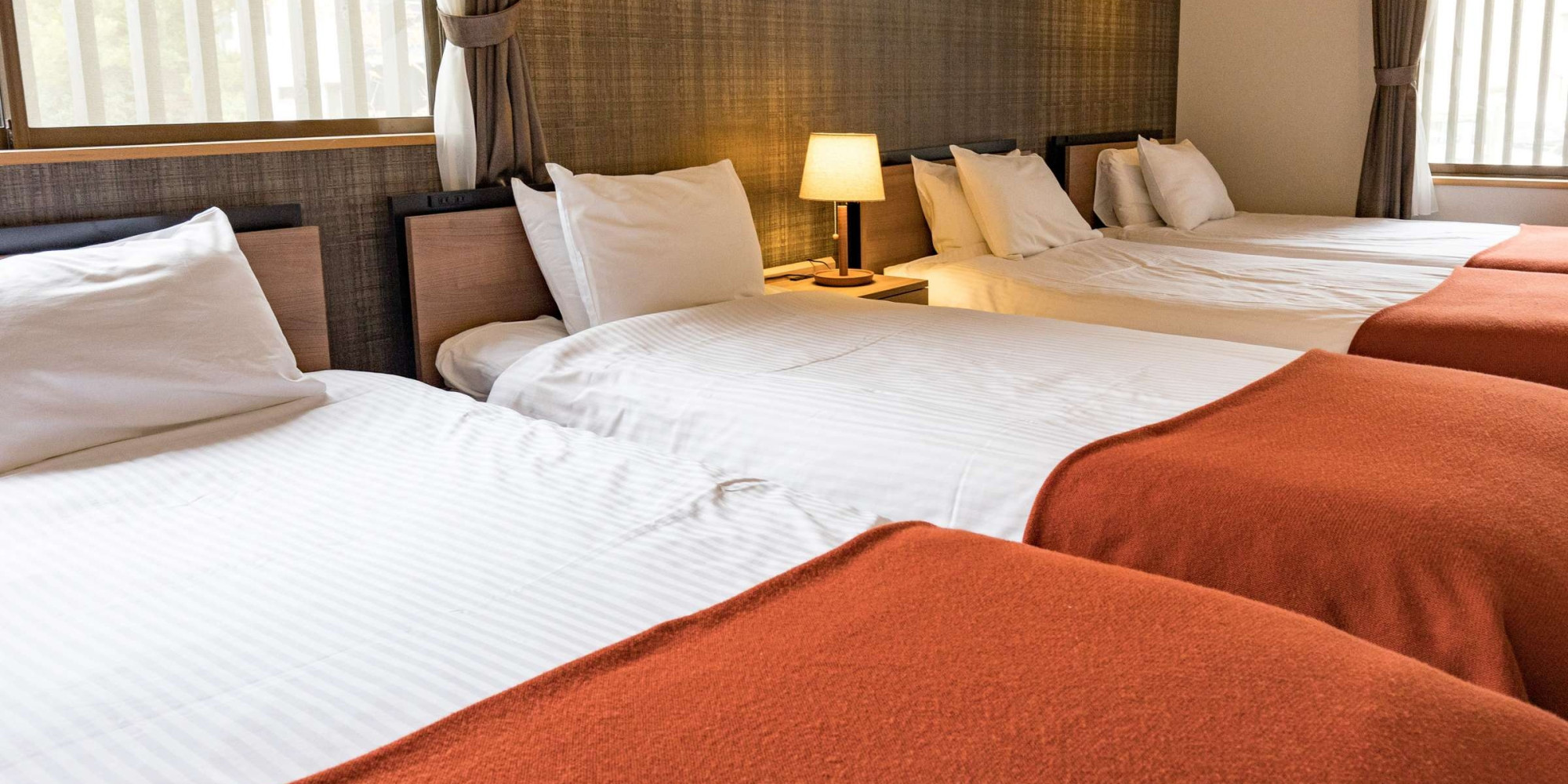 洋室にはシングルベッド4台を完備。和室2室に布団6枚を敷く事ができます。