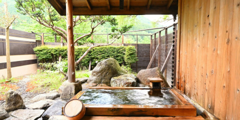 赤沢和風の家には温泉はかけ流しの露天風呂と内湯を完備。