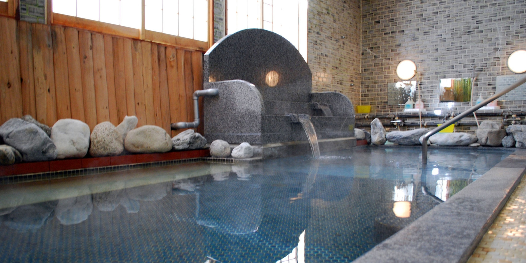 龍泉洞と同じ源泉の水を、岩手の木炭と玉川温泉郷のラジウム鉱石に通すことで温泉のようなお湯へと変化させ、お風呂に使用。
