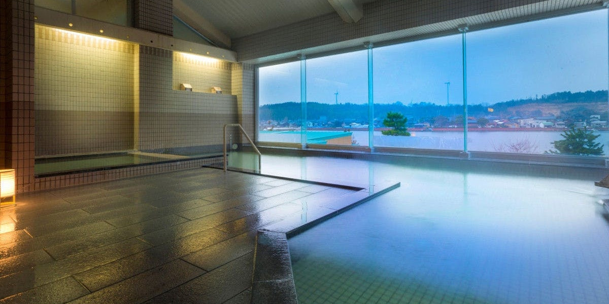北潟湖を一望できる展望風呂