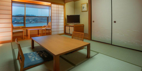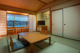 窓からは北潟湖が見渡せる人気のレイクビュー和洋室。