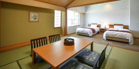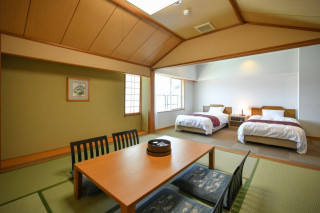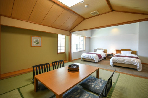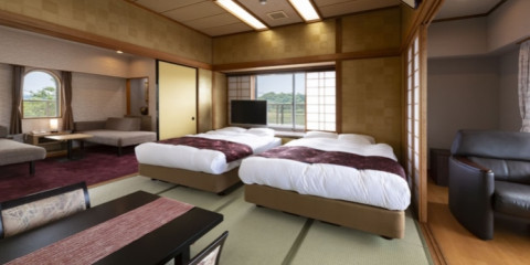 ベッド2つと和室8畳のお部屋です。
