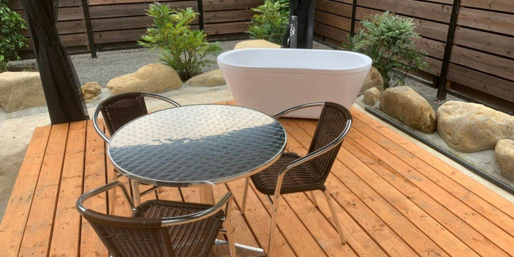 露天の源泉風呂スペースはゆったりとしたリラクゼーションスペースです。