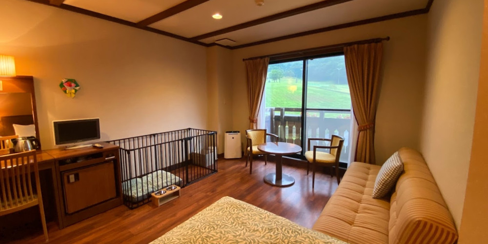 ・レストランと温泉へは愛犬は同行できません。愛犬が客室で独りになる場合は、ケージに入ってお留守番いただきます。