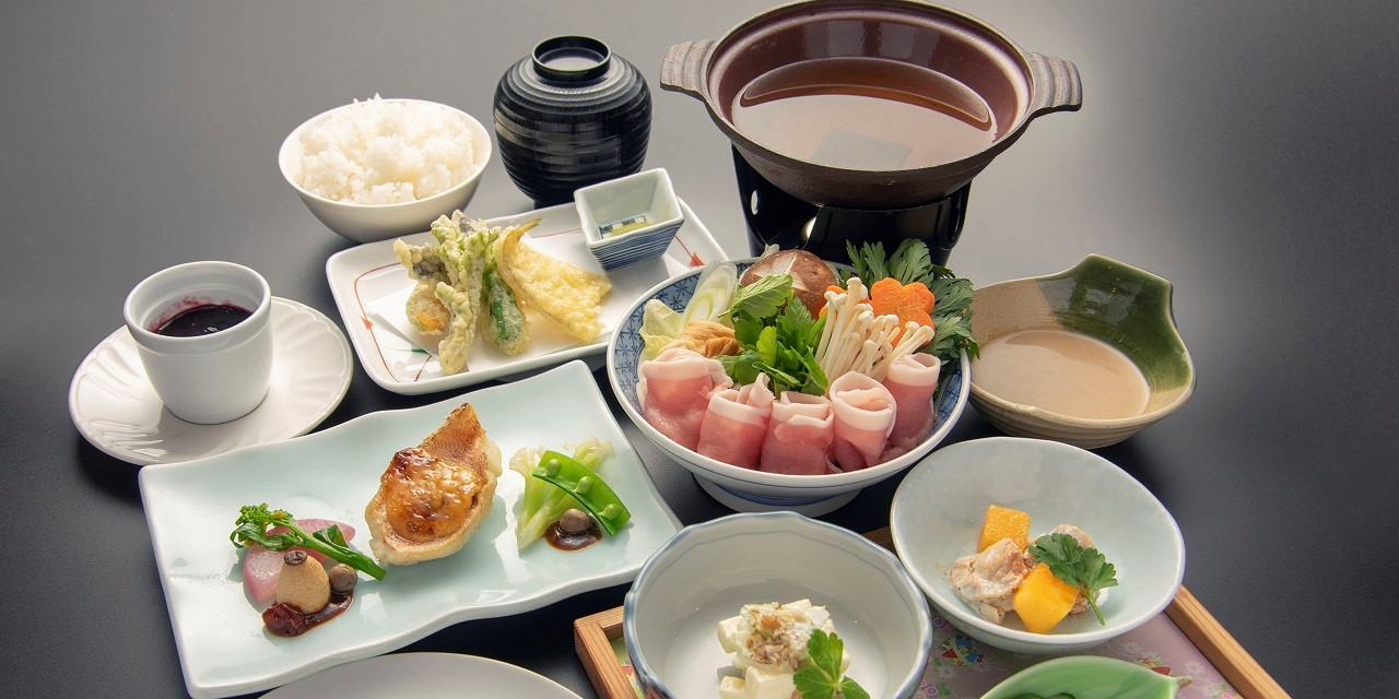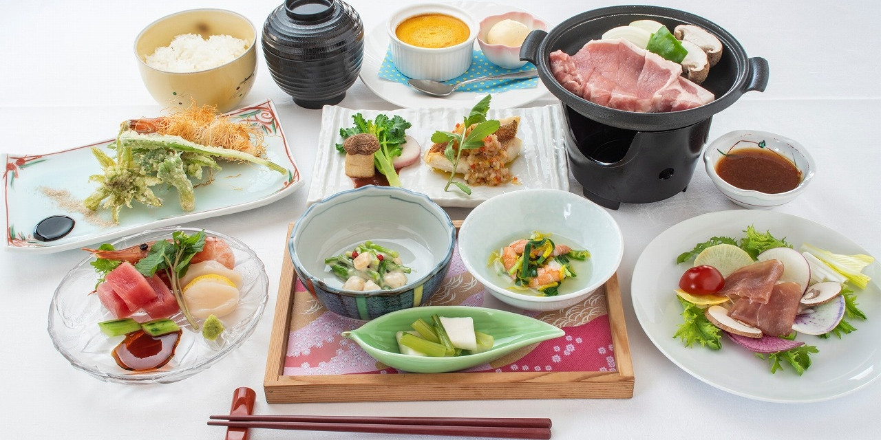 厳選した地元の旬の食材を取り入れた、料理長自慢の洋風会席料理かバイキングをお楽しみ下さい。