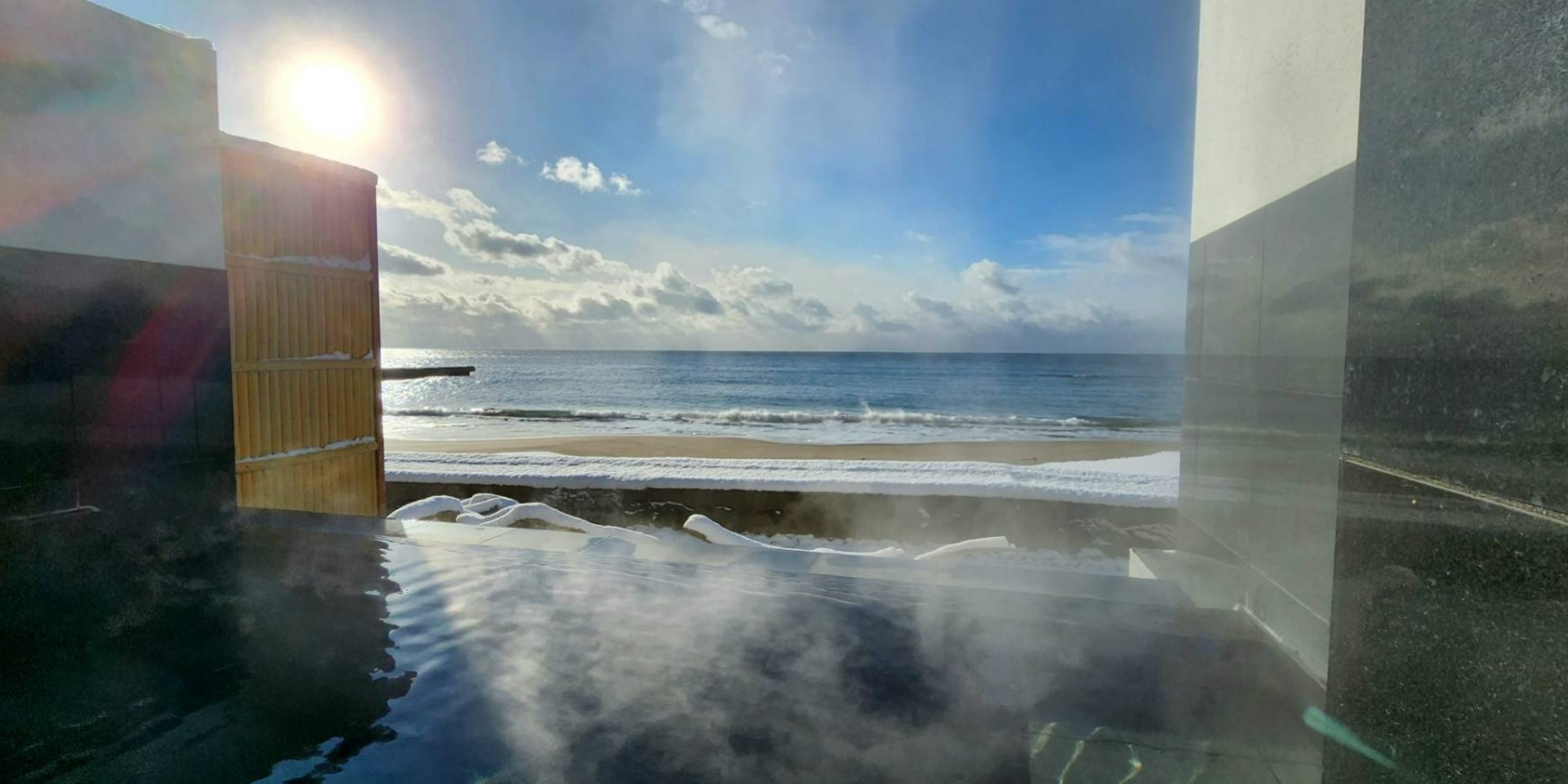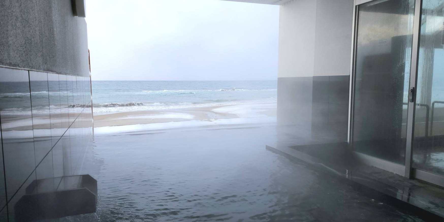 こだわりの温泉と間近に迫る大海原。 ゆったりとしたなごみのひとときが流れる。