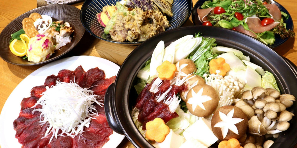 鹿肉の深い味わいと野菜の甘みが溶け合う鍋料理の他、鹿肉の生ハムサラダ、鹿肉と野菜の天ぷら、季節の前菜、〆にはそばをご用意しています。