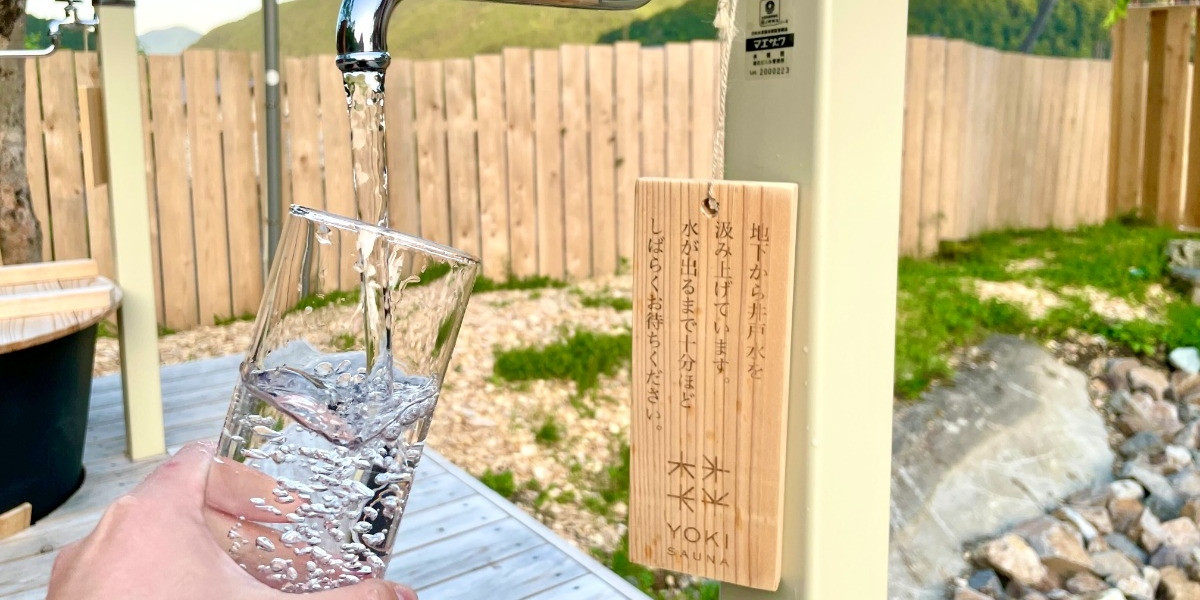 水風呂用に加古川源流の澄んだ井戸水(軟水)を汲み上げています。水分補給にもどうぞ。
