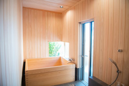 木製のお風呂の中でも特に高いリラックス効果を期待できる、ヒノキ風呂。