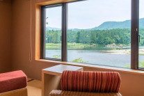 大自然のパノラマを目の前に、鳥のさえずりや川の流れに耳を傾けながらゆったりと落ち着いた雰囲気の客室で、旅の疲れを癒してください。