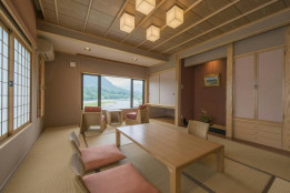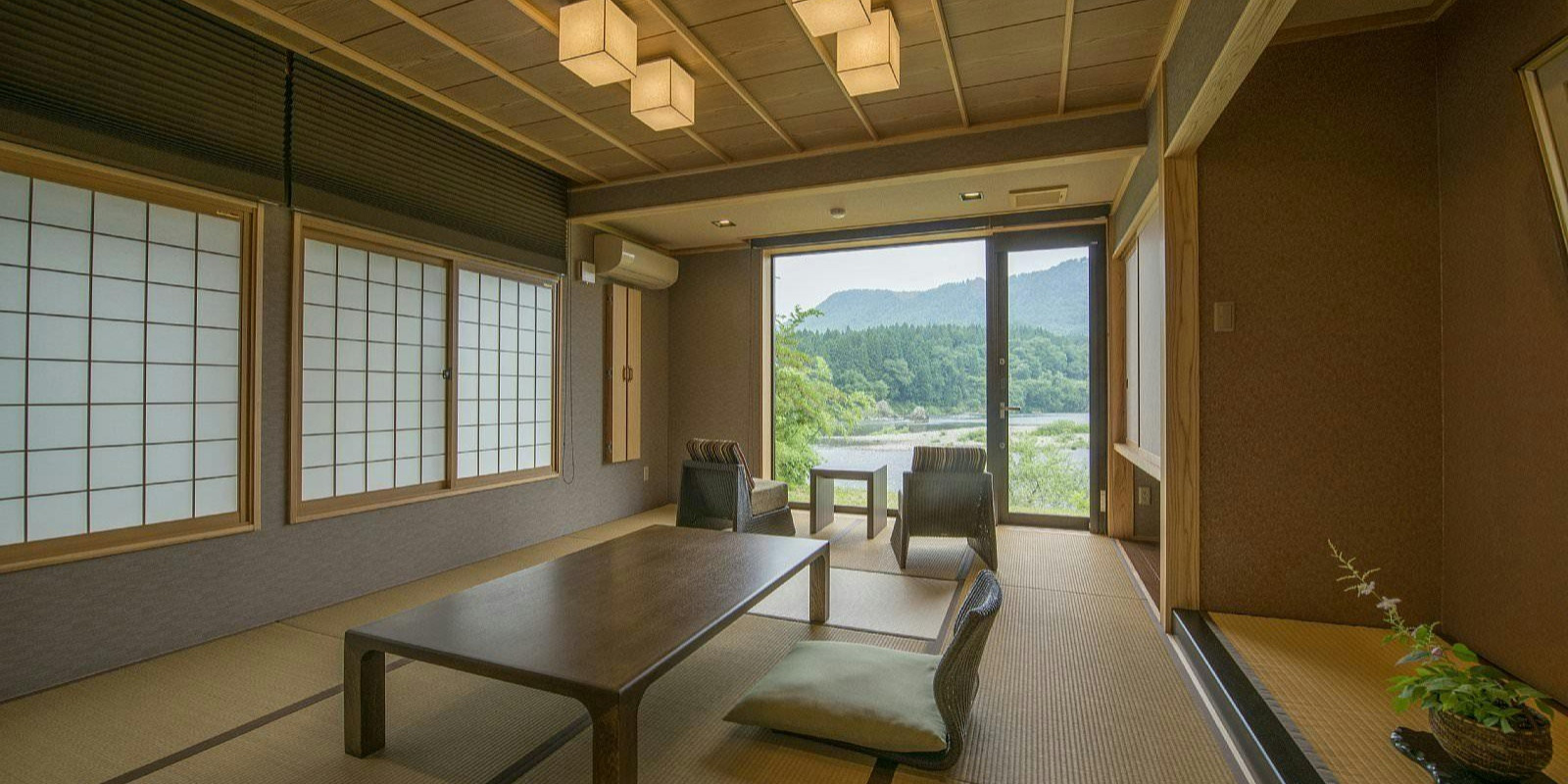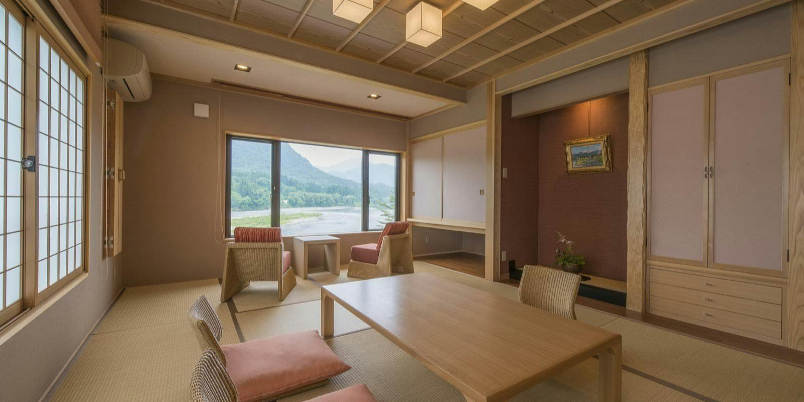 純和風のお部屋からは阿賀野川や美しい山並を望むことができます。