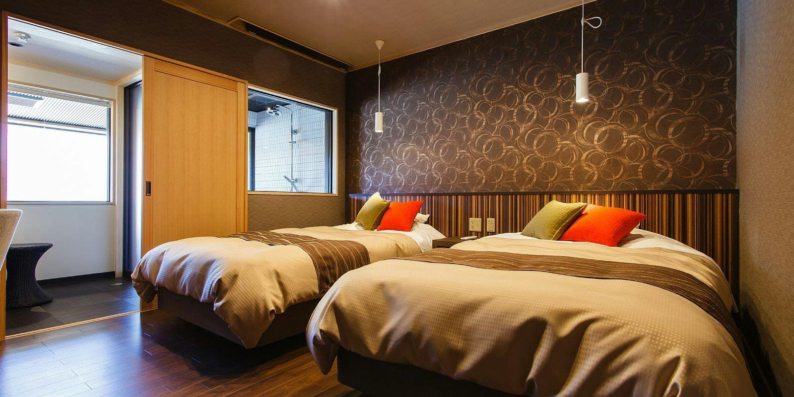 「そよかぜ」はツインベッドルーム・モダン和室・窓付き露天風呂がございます。