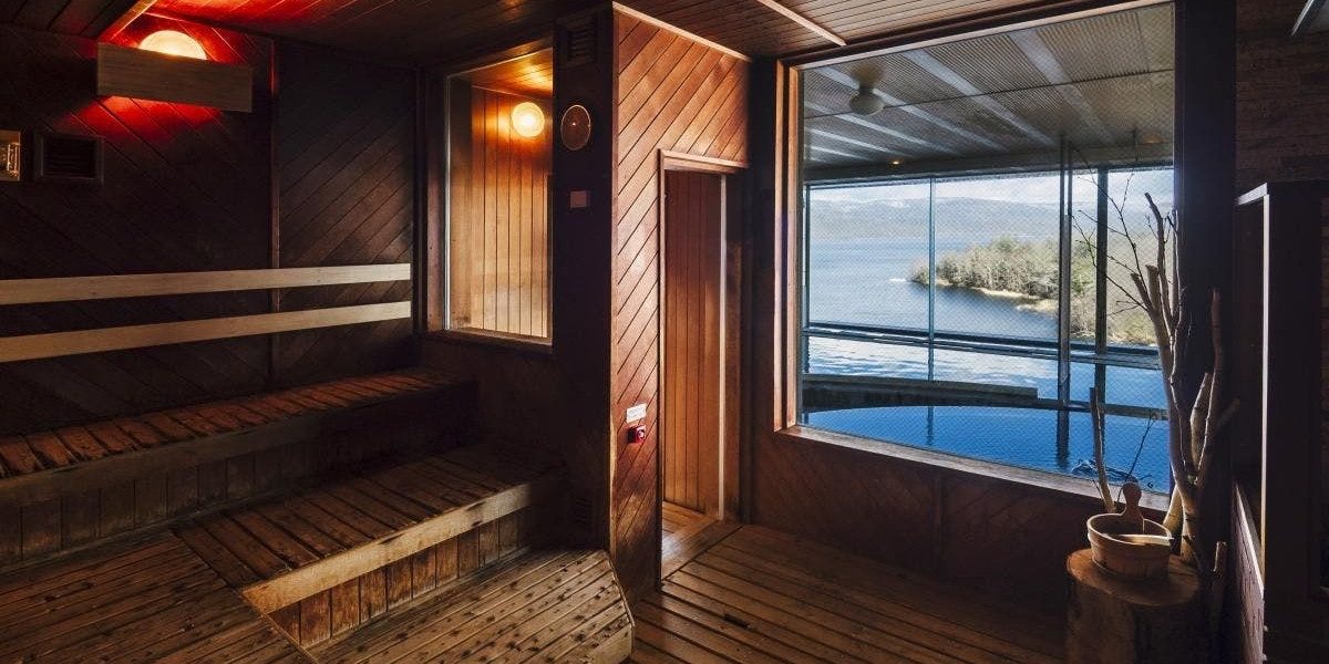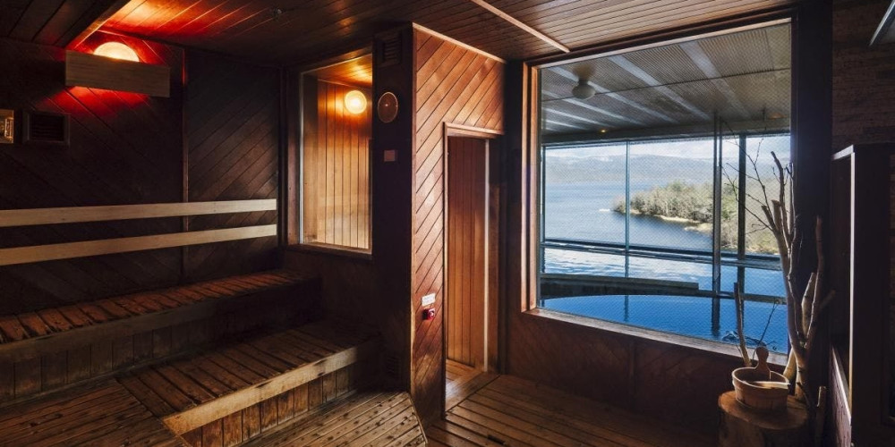 阿寒湖を望む絶景の、室温80~90℃のドライサウナ。
