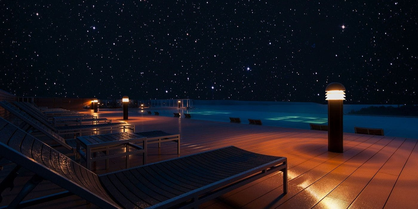 スパと阿寒湖が一体になったかのように見えるインフィニティ・エッジ・スパ。 日中は阿寒湖を一望、夜は満点の星空を眺めながら極上のスパタイムをお過ごしください。