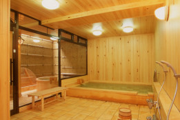 総檜の大浴場と御影石・大理石の庭園風呂。 お部屋・お食事