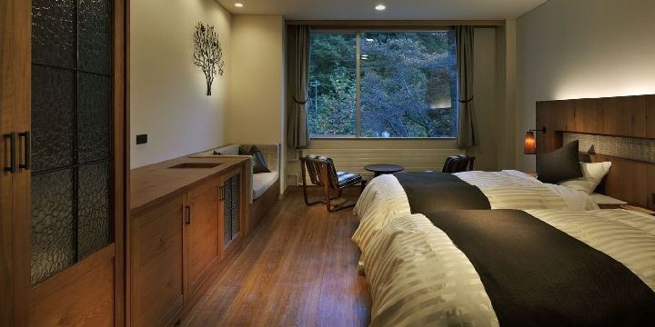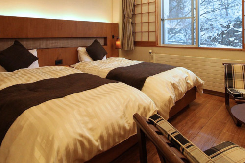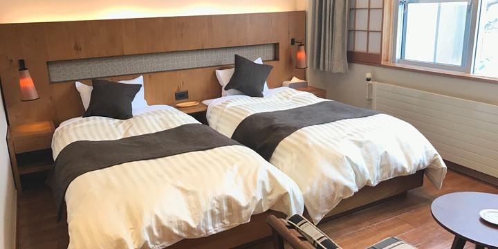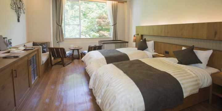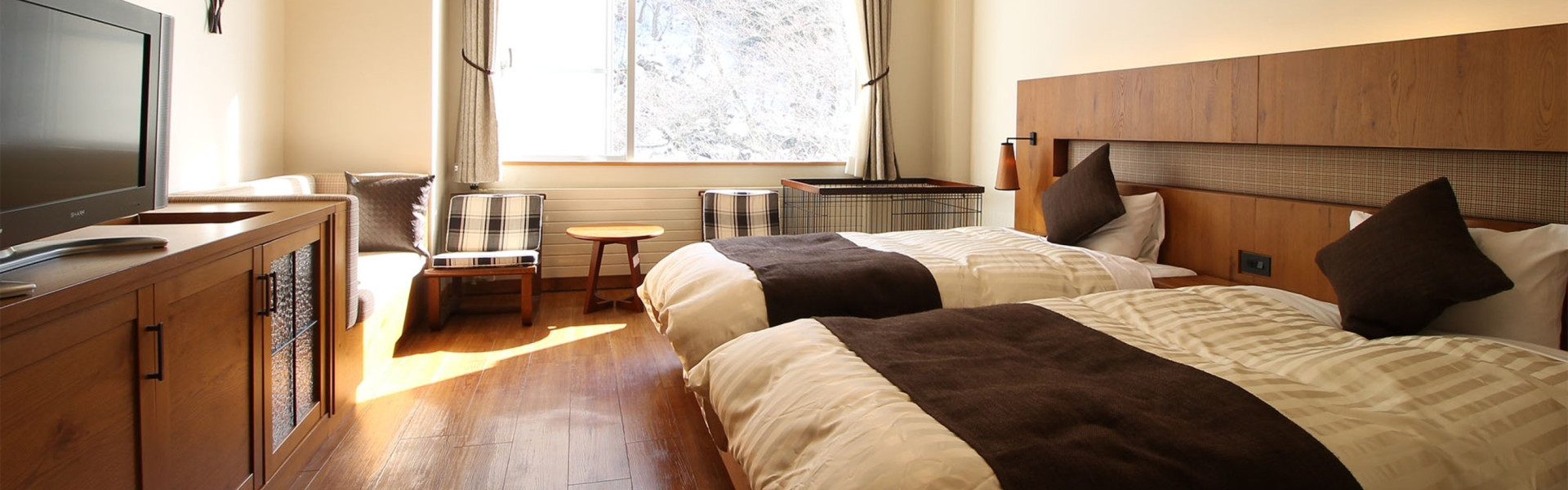カントリー調のインテリアで囲まれた洋室ツインルーム