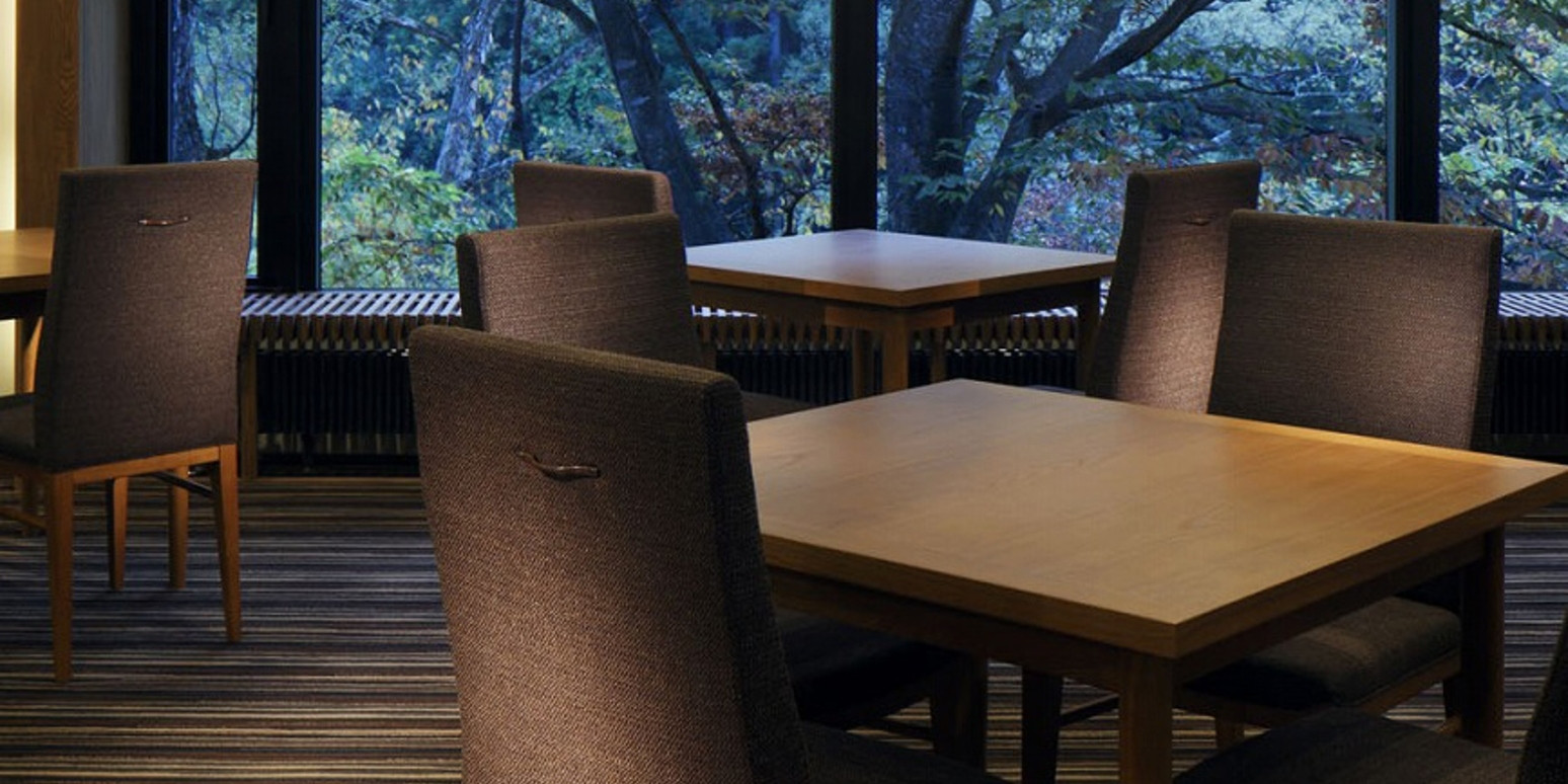 お食事会場は、真横を流れる利根川のせせらぎとともに味わう「メインダイニング」